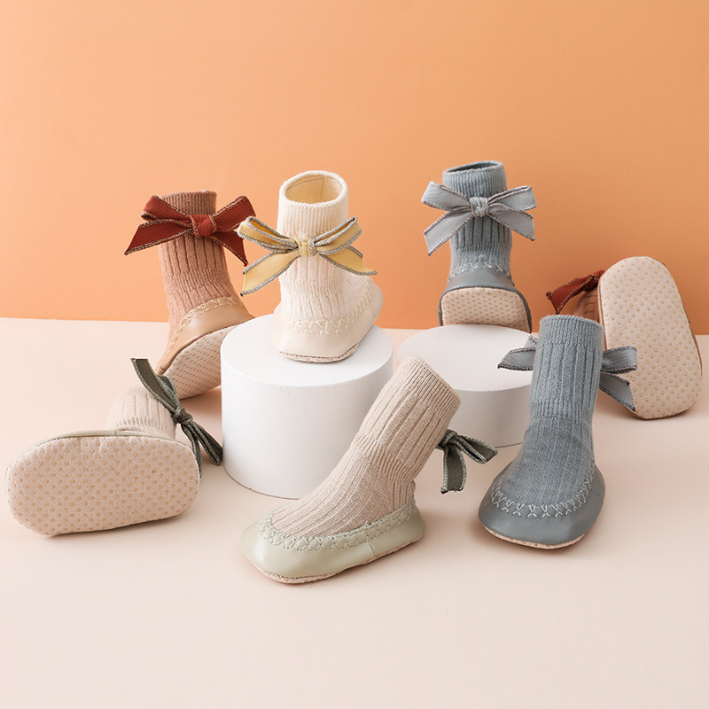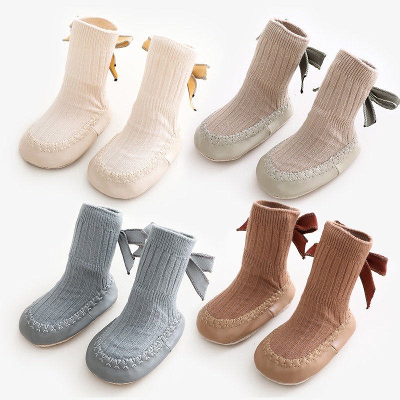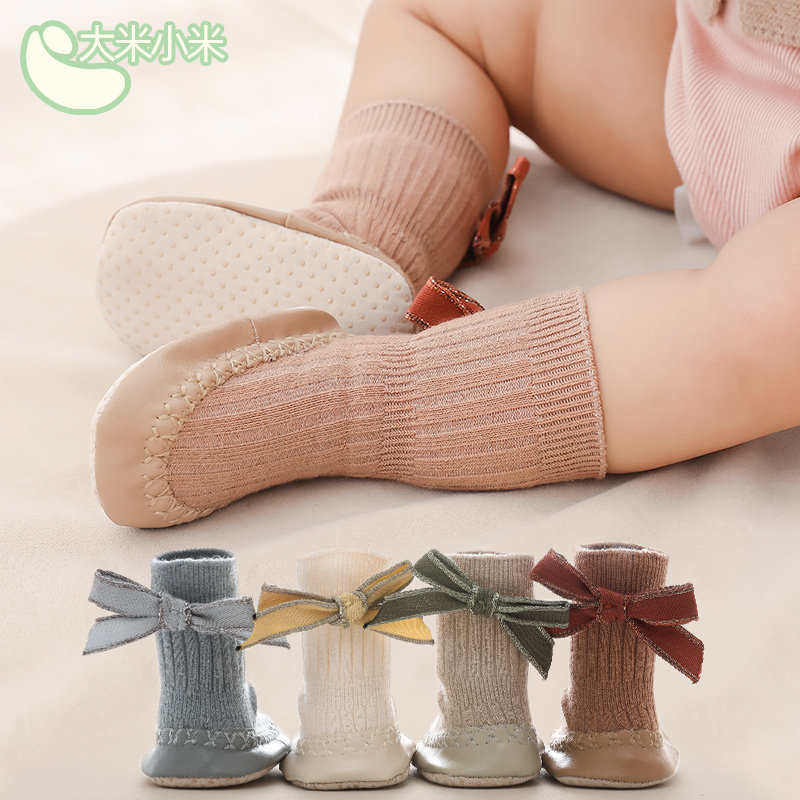 Детская осенняя хлопковая тонкая нескользящая обувь для раннего возраста, гольфы с бантиком, средней длины
