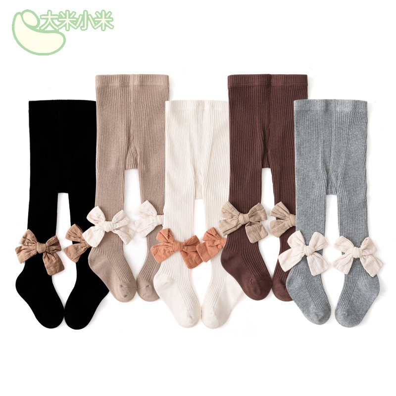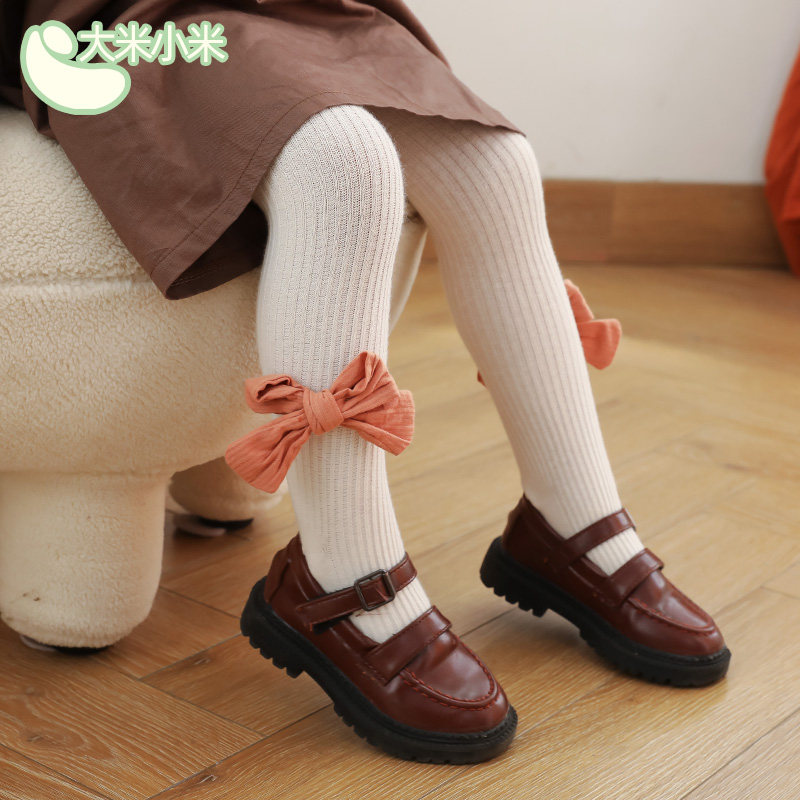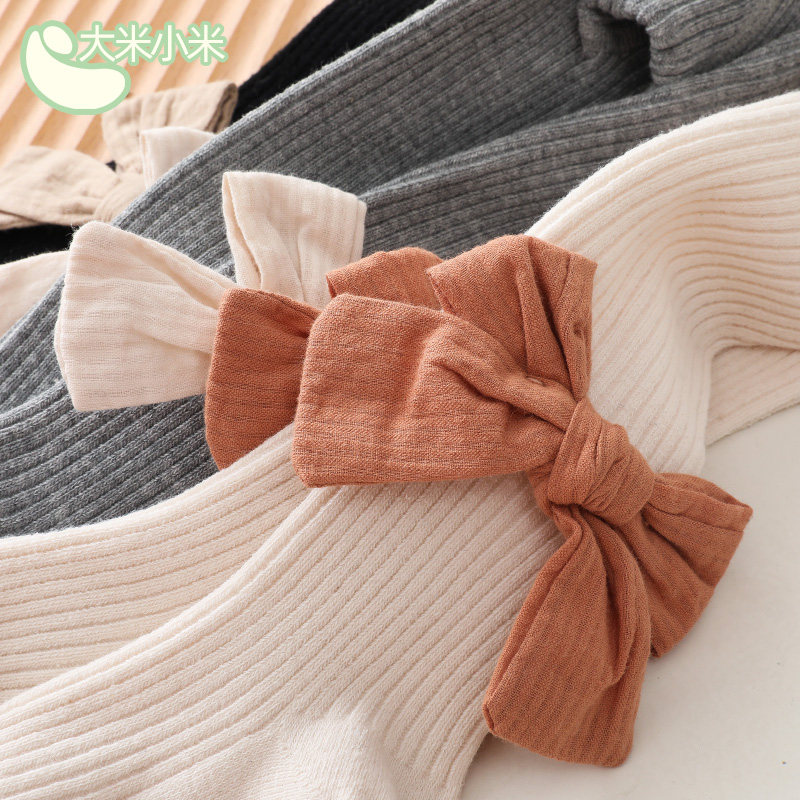 Детские осенние хлопковые колготки, леггинсы, носки с бантиком, штаны