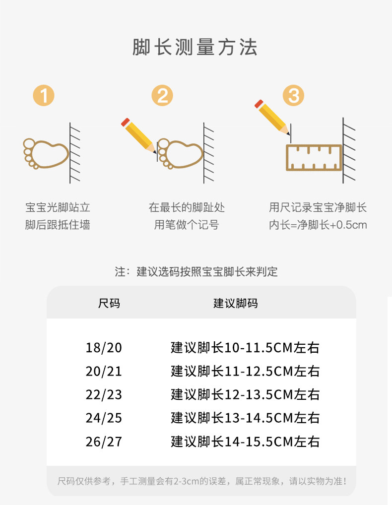 | Возрастная категория: | Код 18/20 [рекомендуется составлять около 10-11,5 см в длину], 20/21 код [рекомендуется иметь длину около 11-12,5 см], Размер 22/23 [рекомендуемая длина стопы около 12-13,55 см], Код 24/25 [Рекомендуется иметь длину около 13-14,5 см], 26/27 код [рекомендуется быть около 14-15,5 см длиной] |