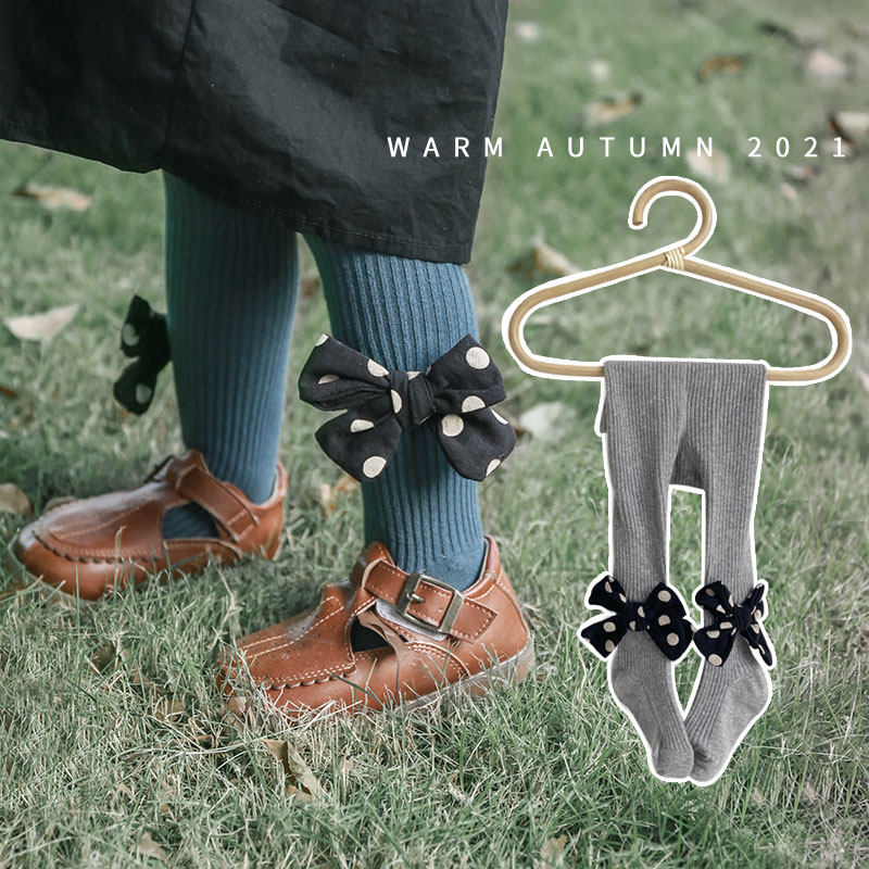 Хлопковые тонкие колготки, леггинсы с бантиком для девочек, штаны, базовые носки, в корейском стиле