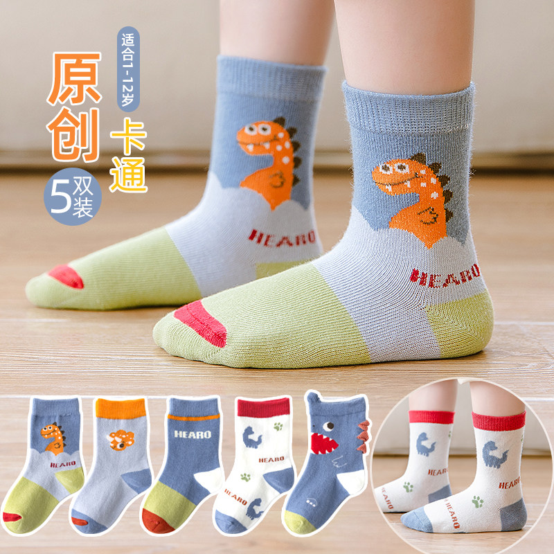 Тонкие носки для мальчиков, хлопковые мультяшные детские демисезонные гольфы, средней длины, подходят для подростков