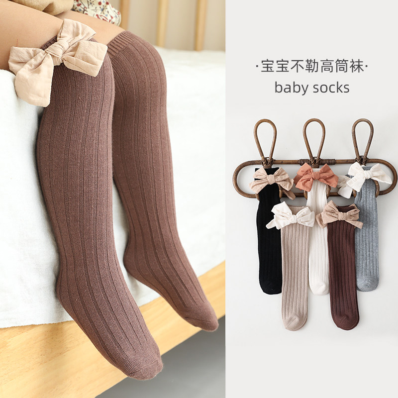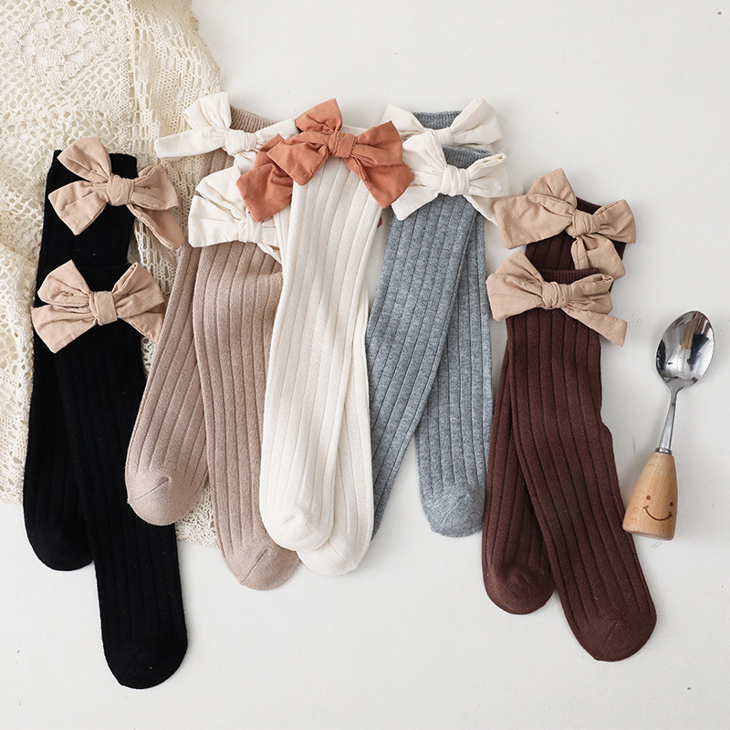 Детские гольфы, осенние носки, хлопковые высокие сапоги с бантиком для принцессы