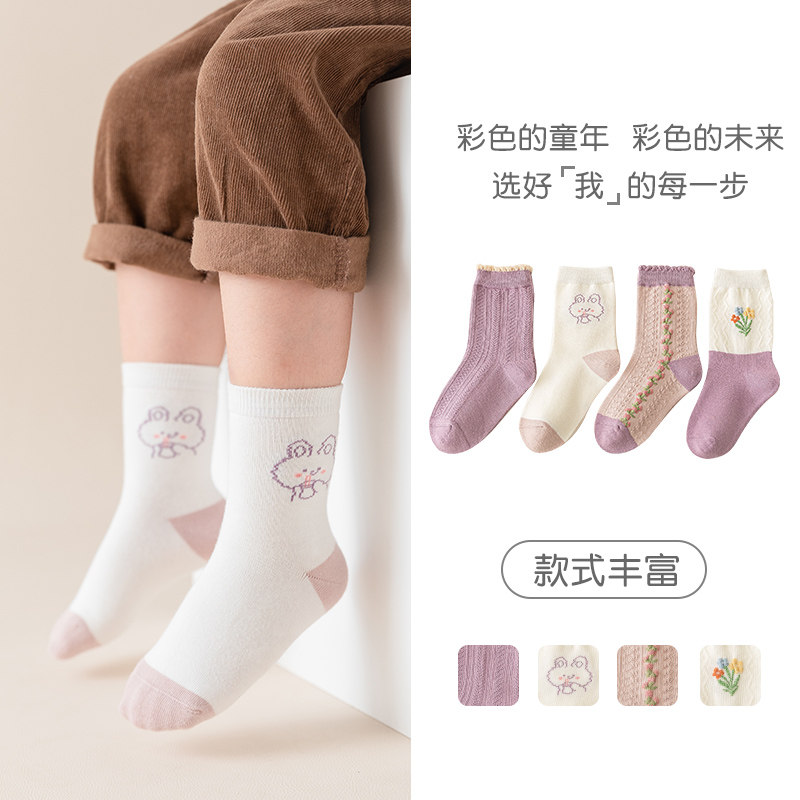 Детские осенние хлопковые носки, демисезонные мультяшные гольфы, подходят для подростков, средней длины