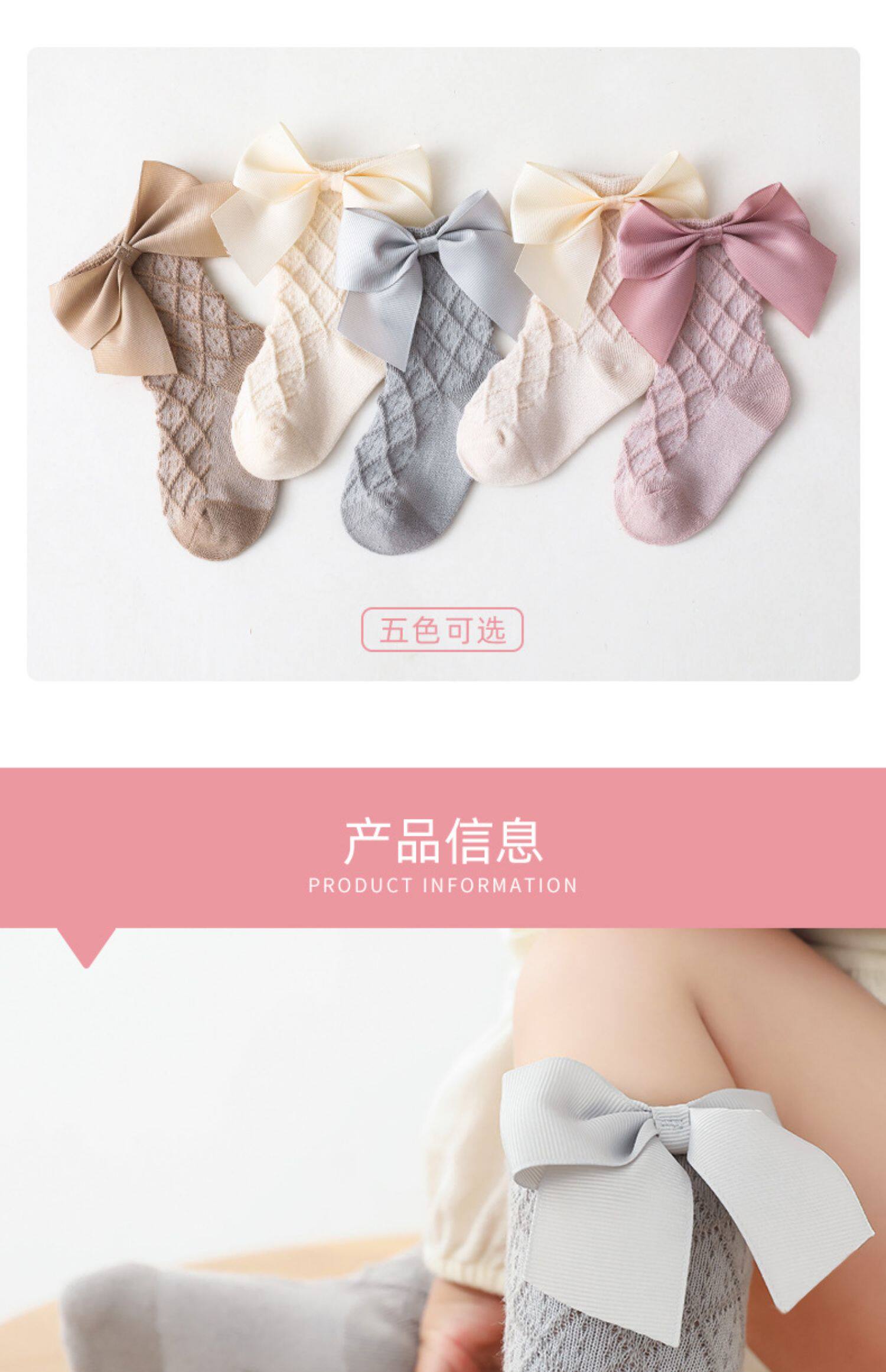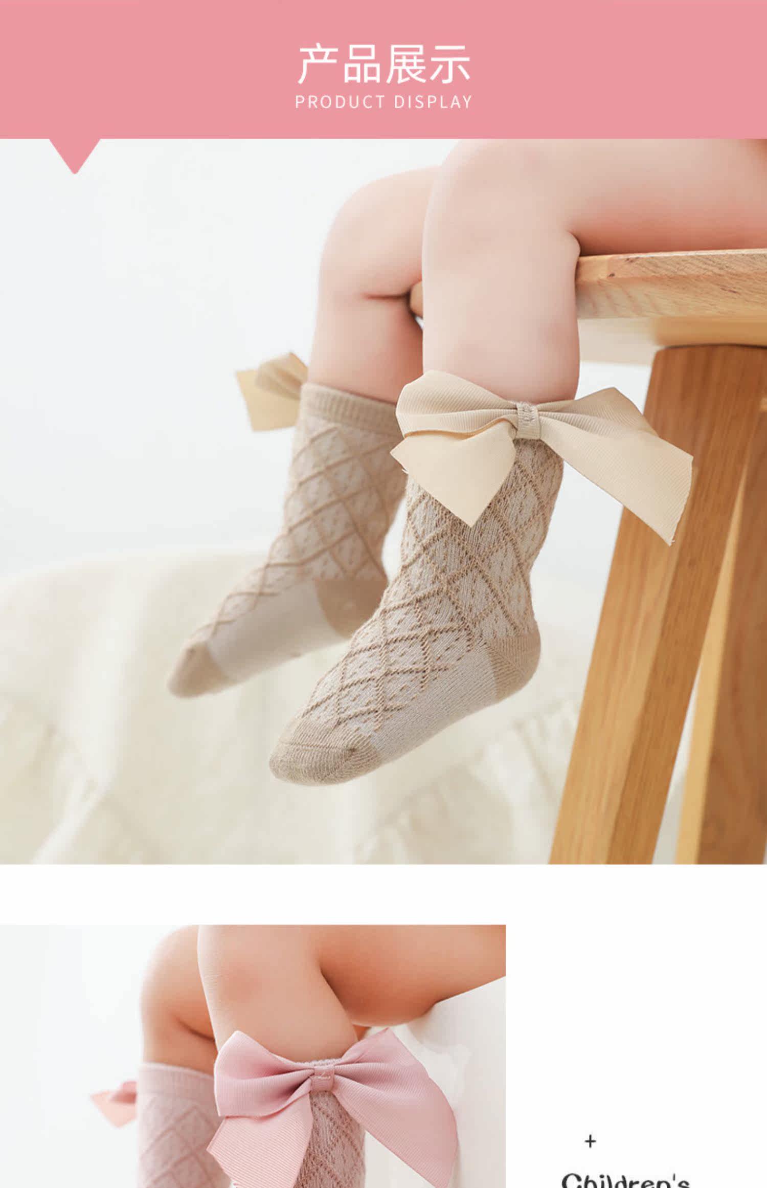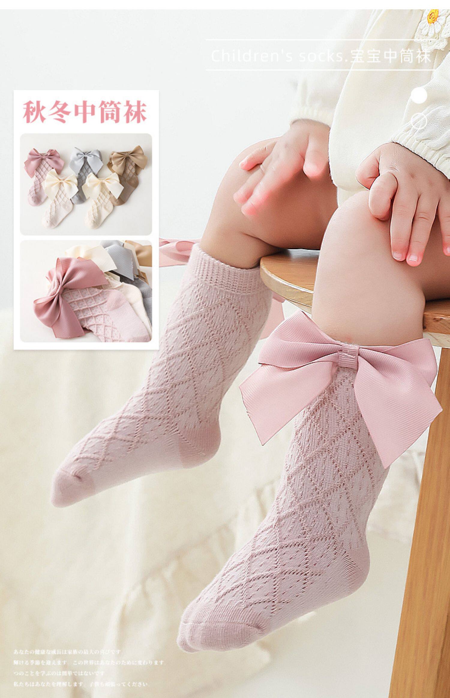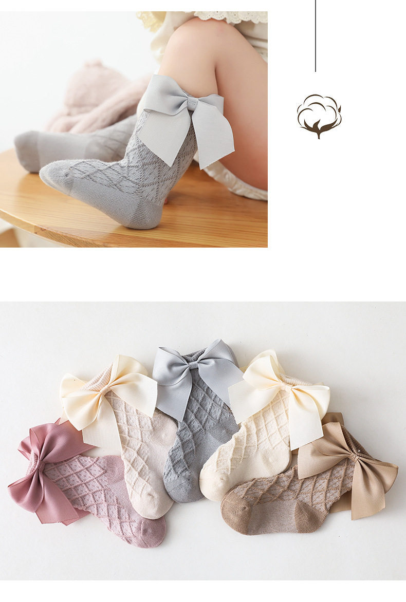 Детские тонкие гольфы, милые носки для девочек для новорожденных для раннего возраста с бантиком, средней длины, в корейском стиле