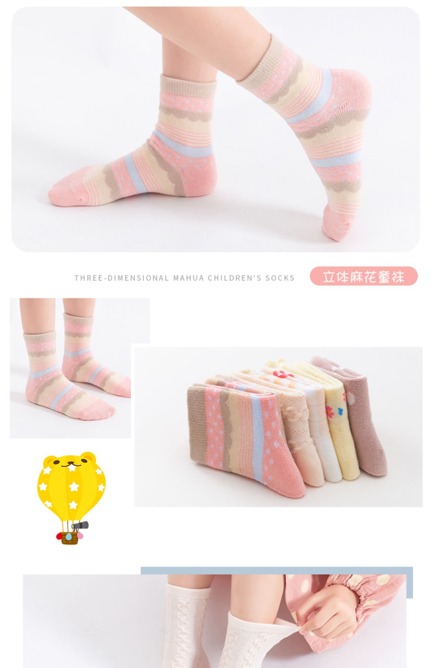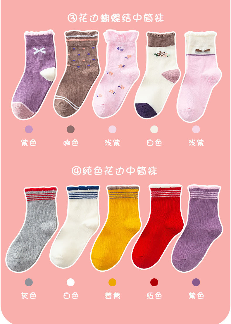 - [10 паров] Многослойные цветные носки+цветочная бабочка узел детские носки