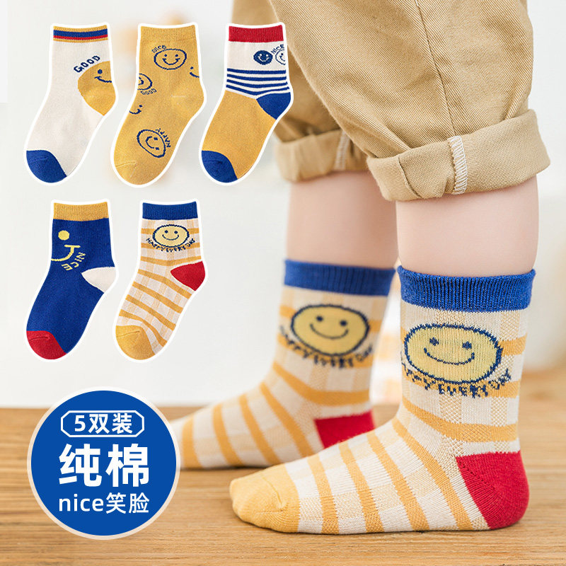 Детские тонкие носки, хлопковые демисезонные мультяшные гольфы для мальчиков, средней длины