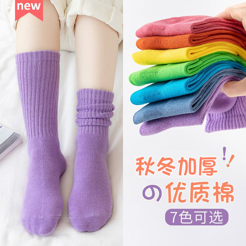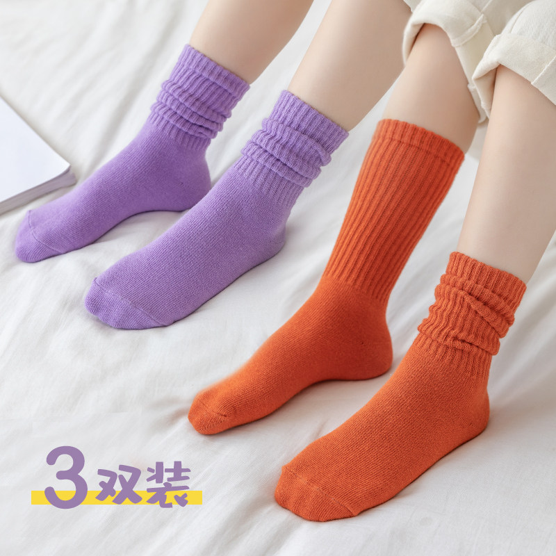 - [Горячий продавец чистый цвет осень и зимний качественный хлопок 3 пары] фиолетовый+куркума+апельсин