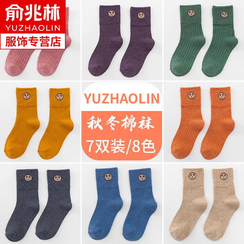 俞兆林 Детские хлопковые осенние мультяшные демисезонные носки для мальчиков, подходят для подростков, средней длины