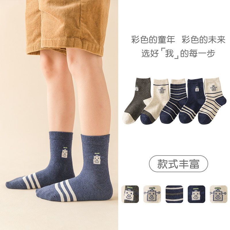 Детские осенние хлопковые носки, зимний робот для мальчиков, гольфы, подходят для подростков, средней длины