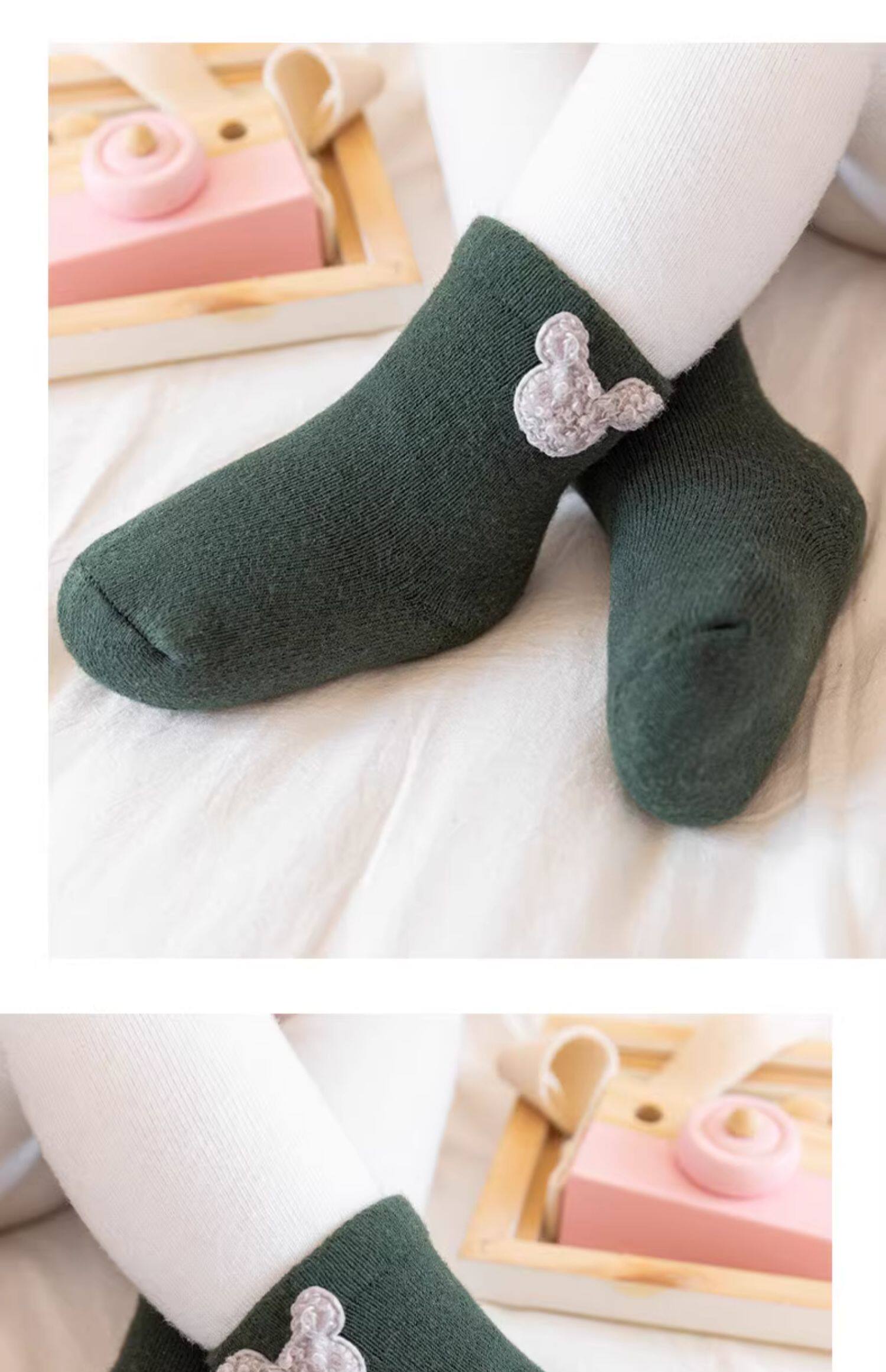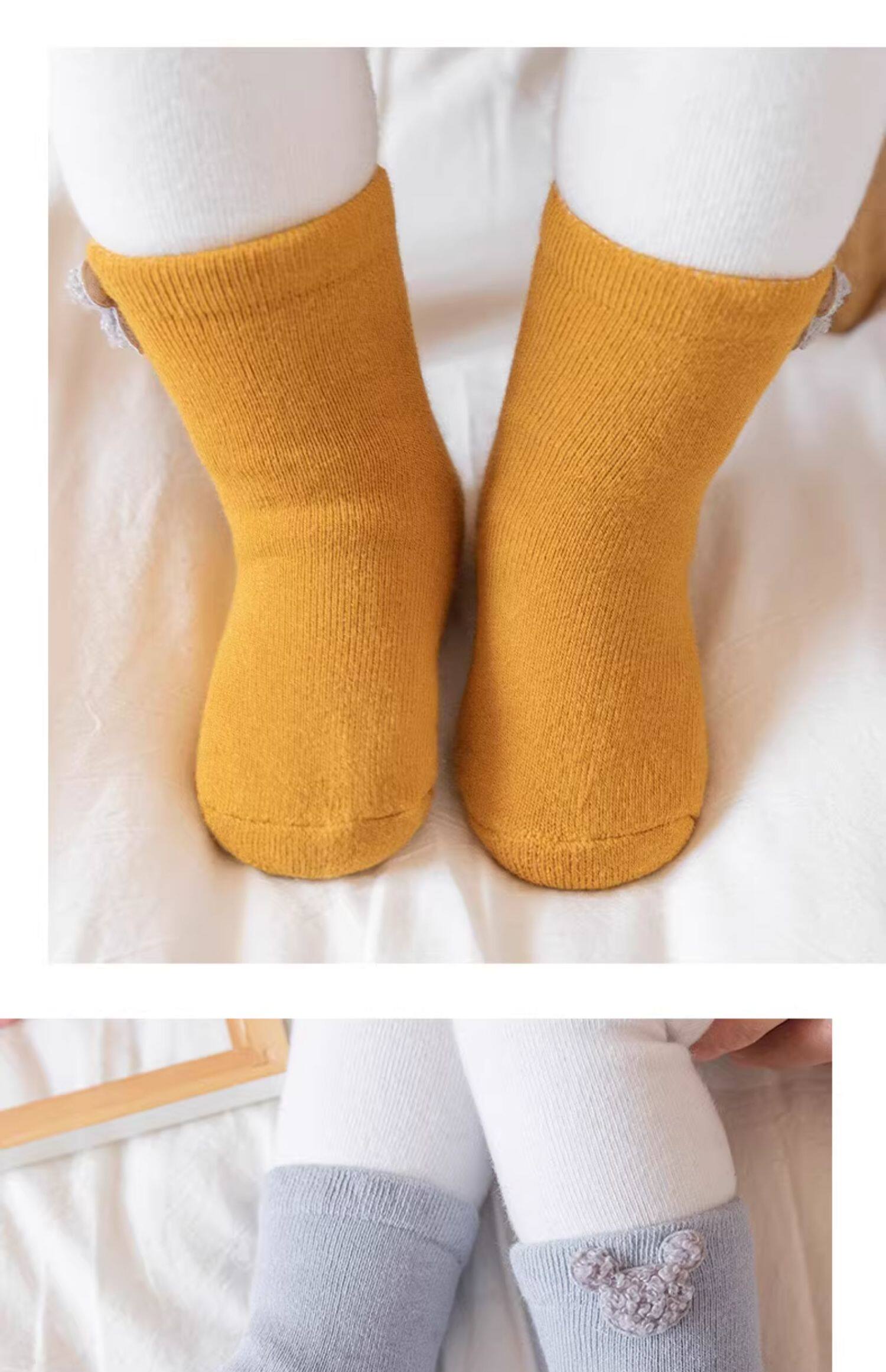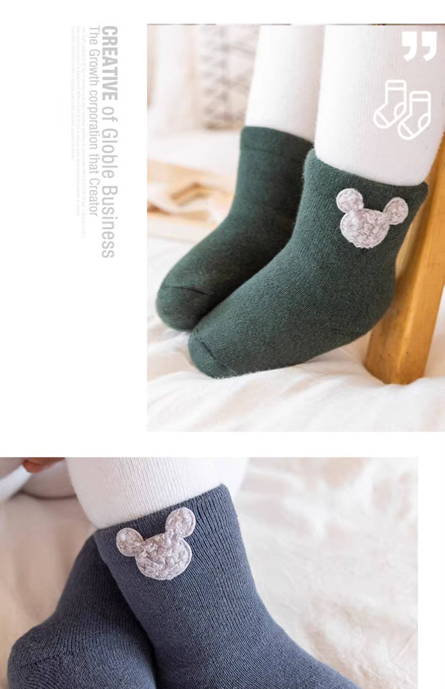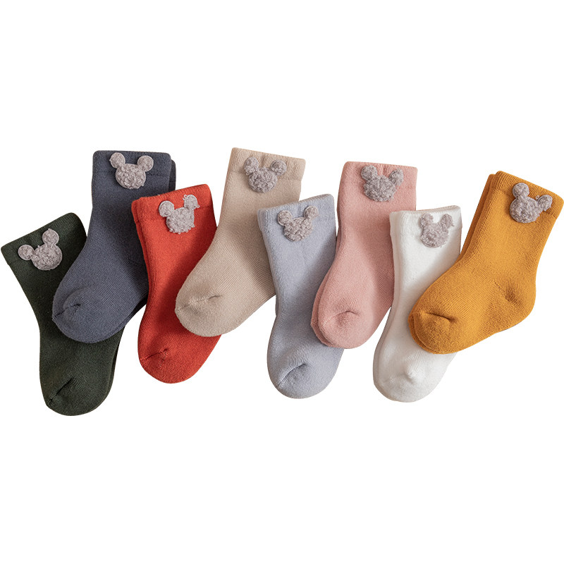 Детские демисезонные хлопковые утепленные носки, осенние милые гольфы для новорожденных, средней длины