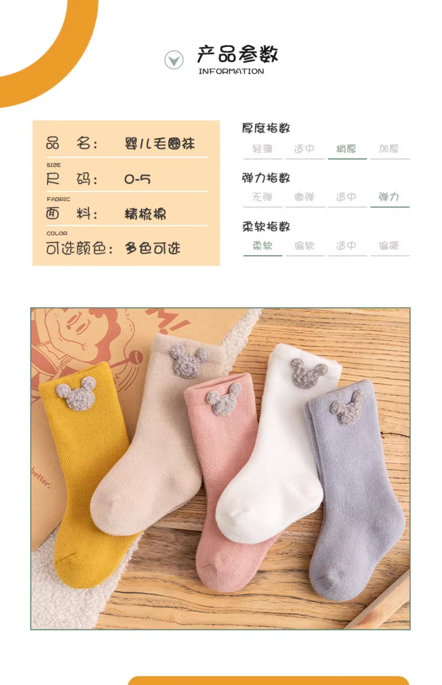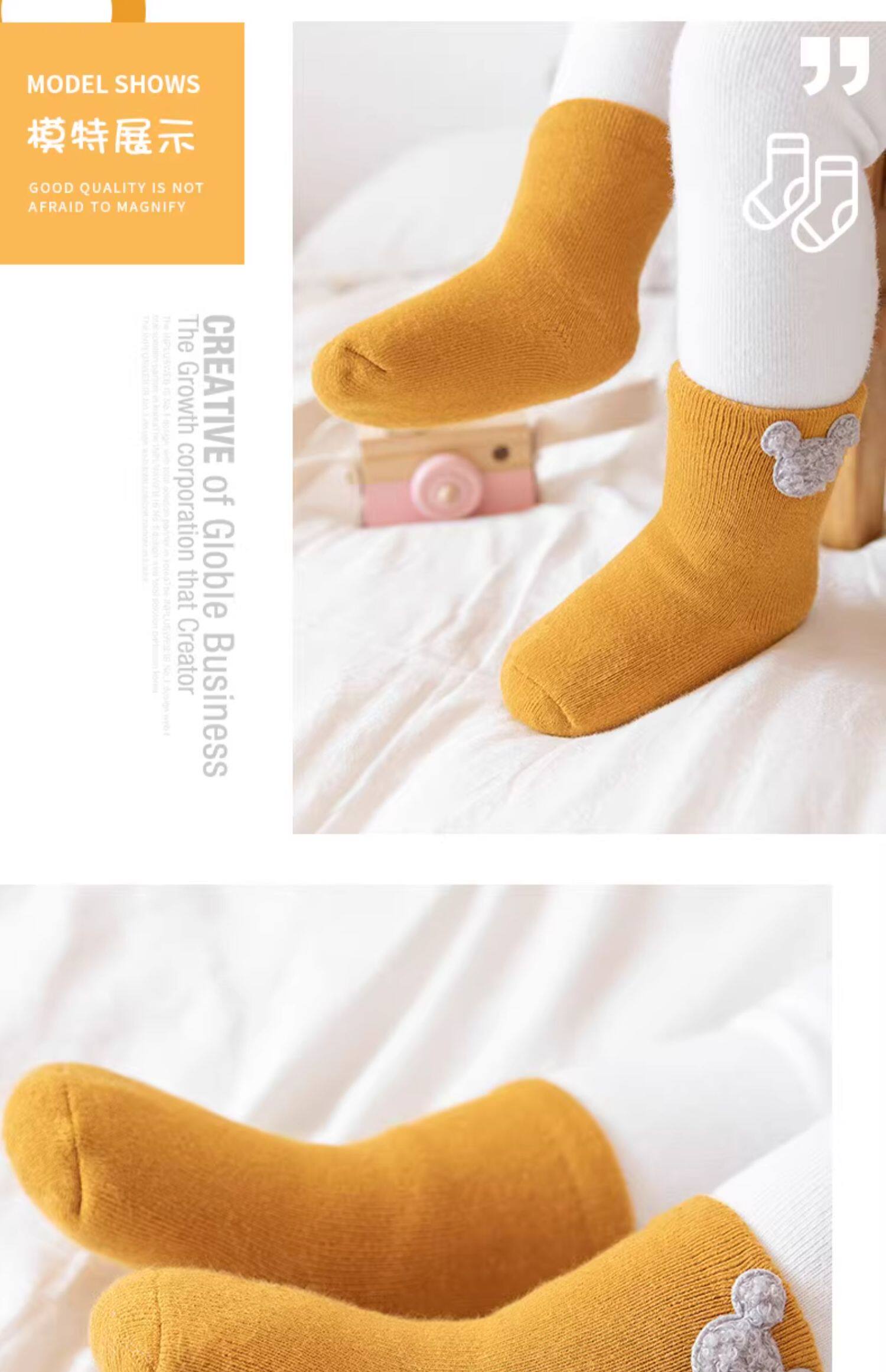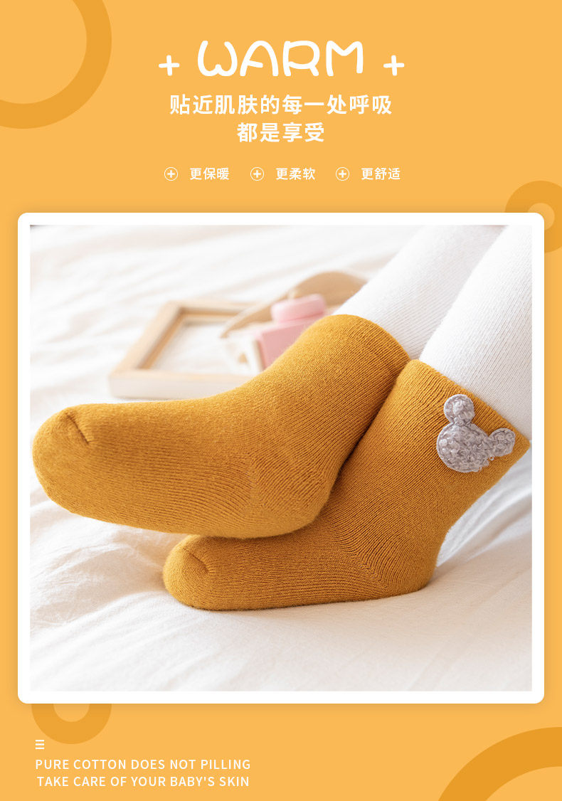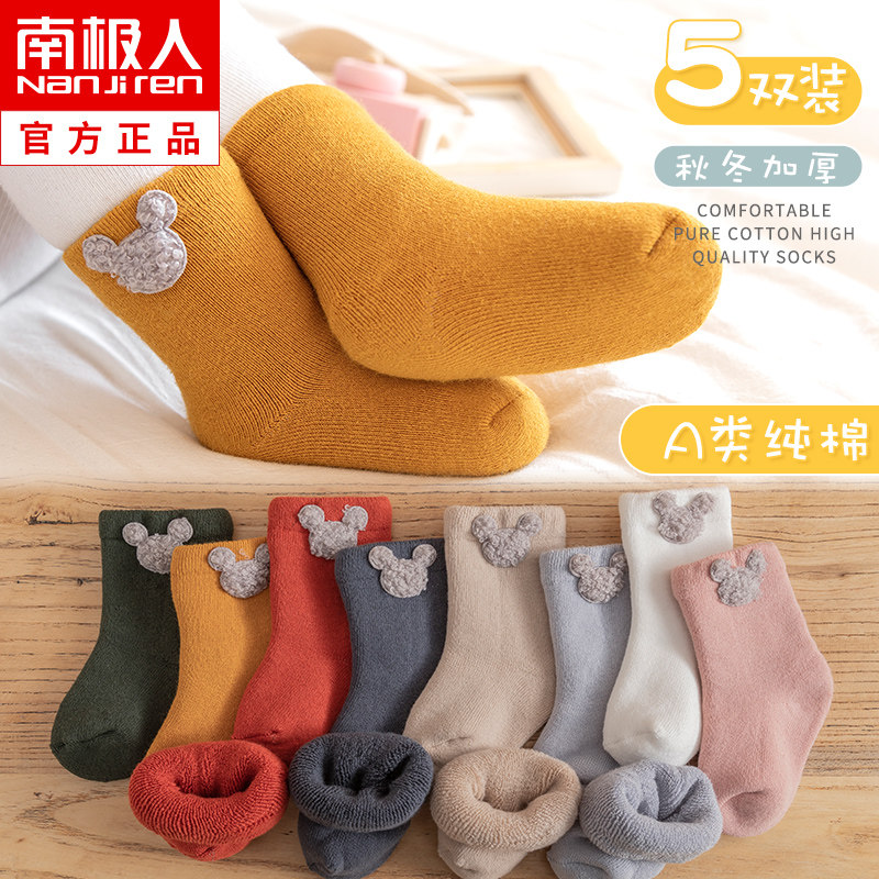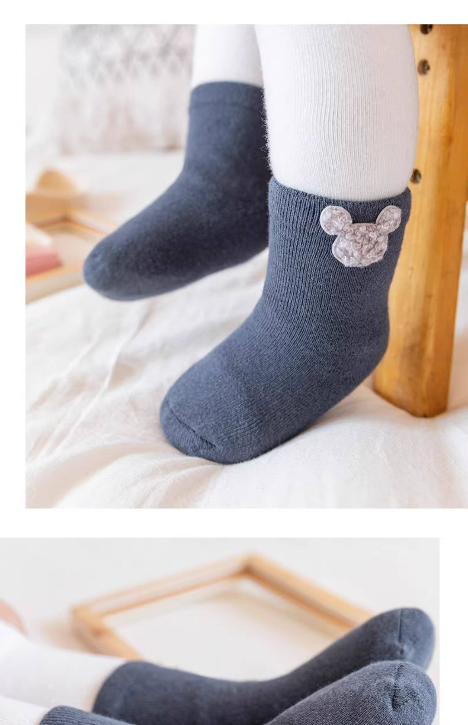 Детские демисезонные хлопковые утепленные носки, осенние милые гольфы для новорожденных, средней длины