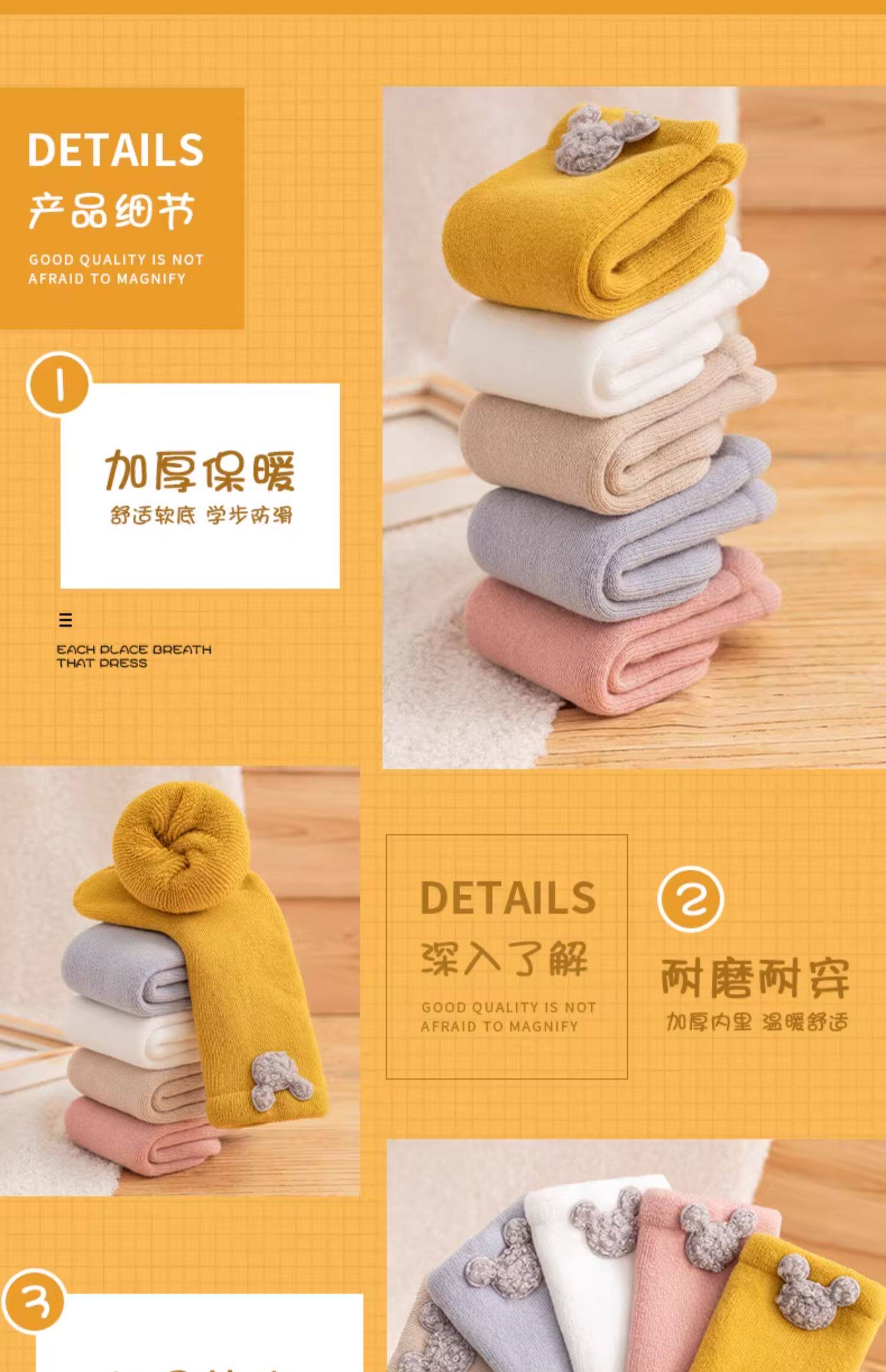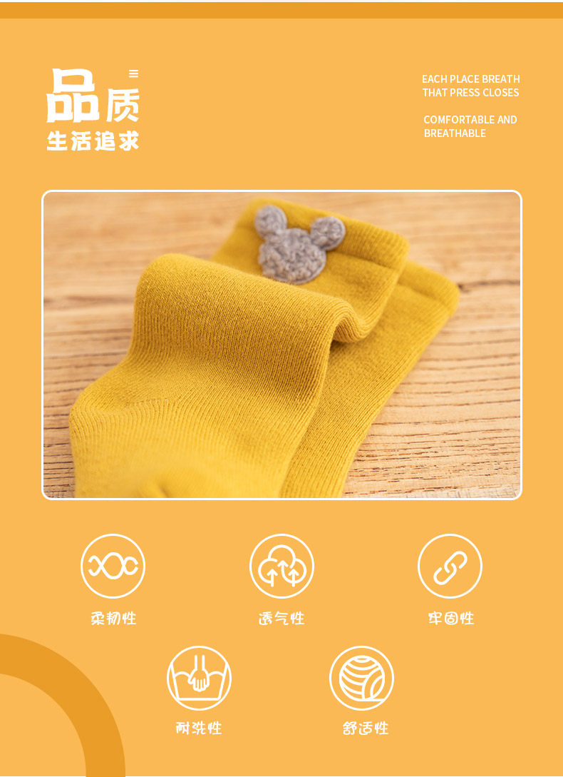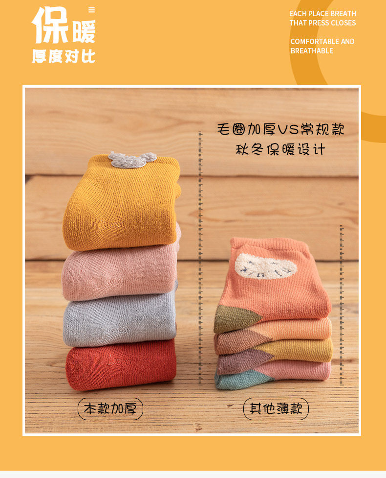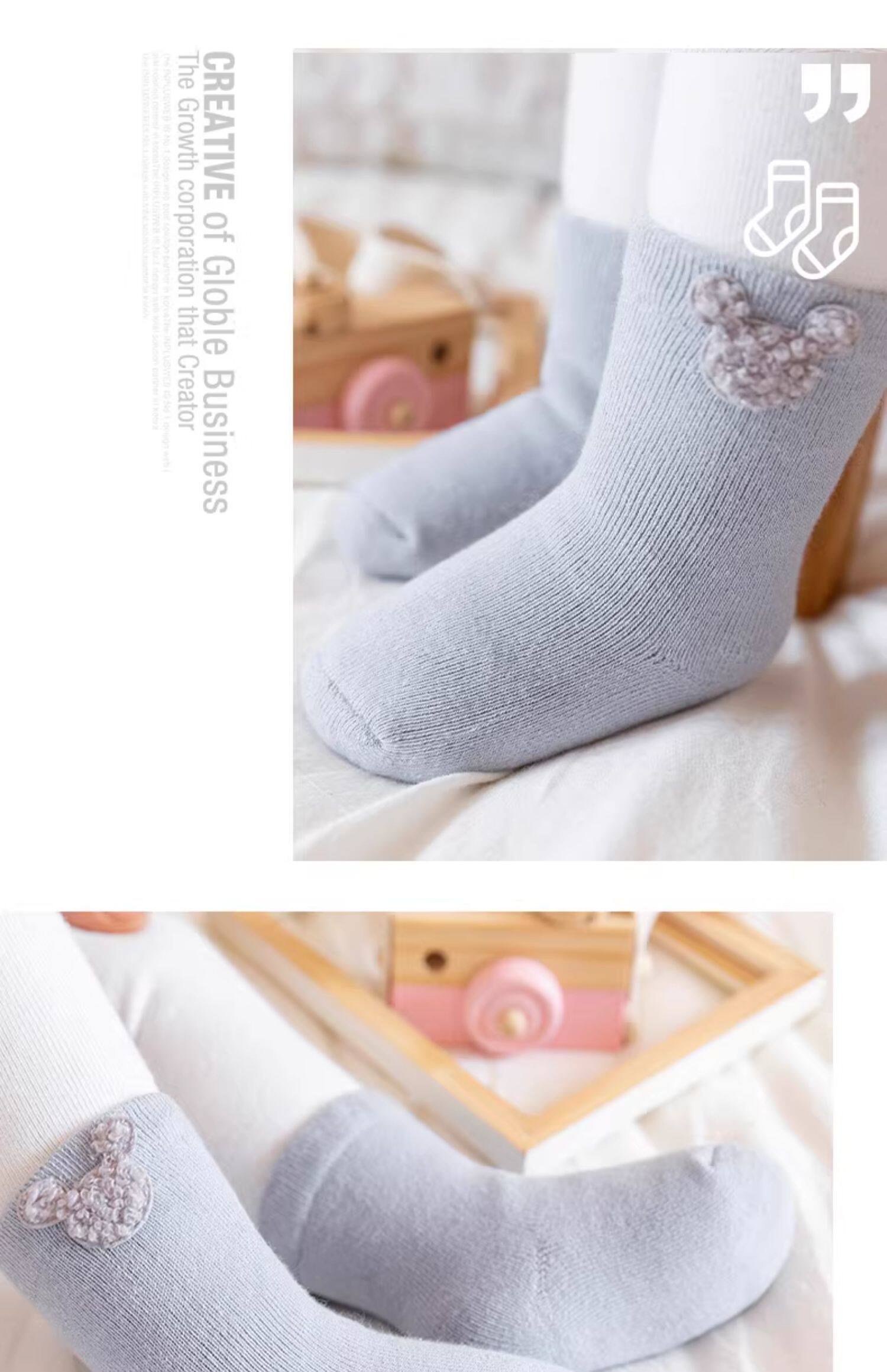 Детские демисезонные хлопковые утепленные носки, осенние милые гольфы для новорожденных, средней длины