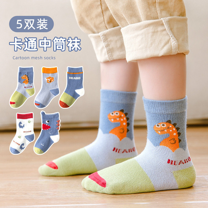 Детские хлопковые демисезонные носки для мальчиков, тонкие дышащие гольфы, подходят для подростков, средней длины