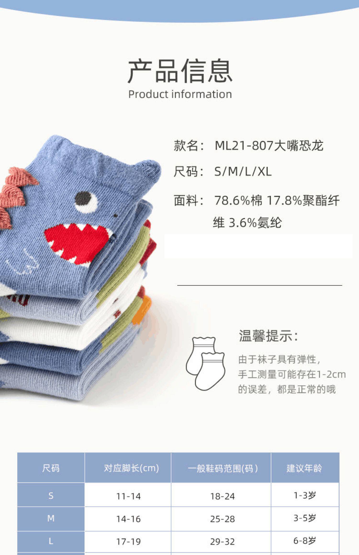 - Динозавр большого рта (чистый хлопок класса A) 5-двойной пакет Pure Cotton Antipulse