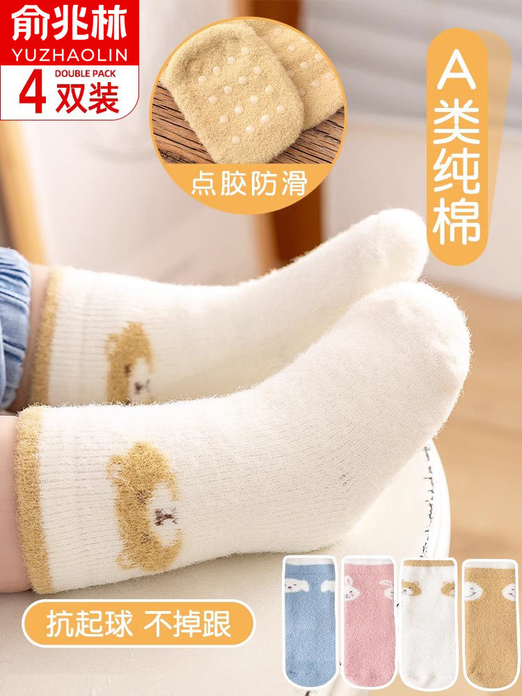 Детские демисезонные утепленные хлопковые нескользящие носки для новорожденных