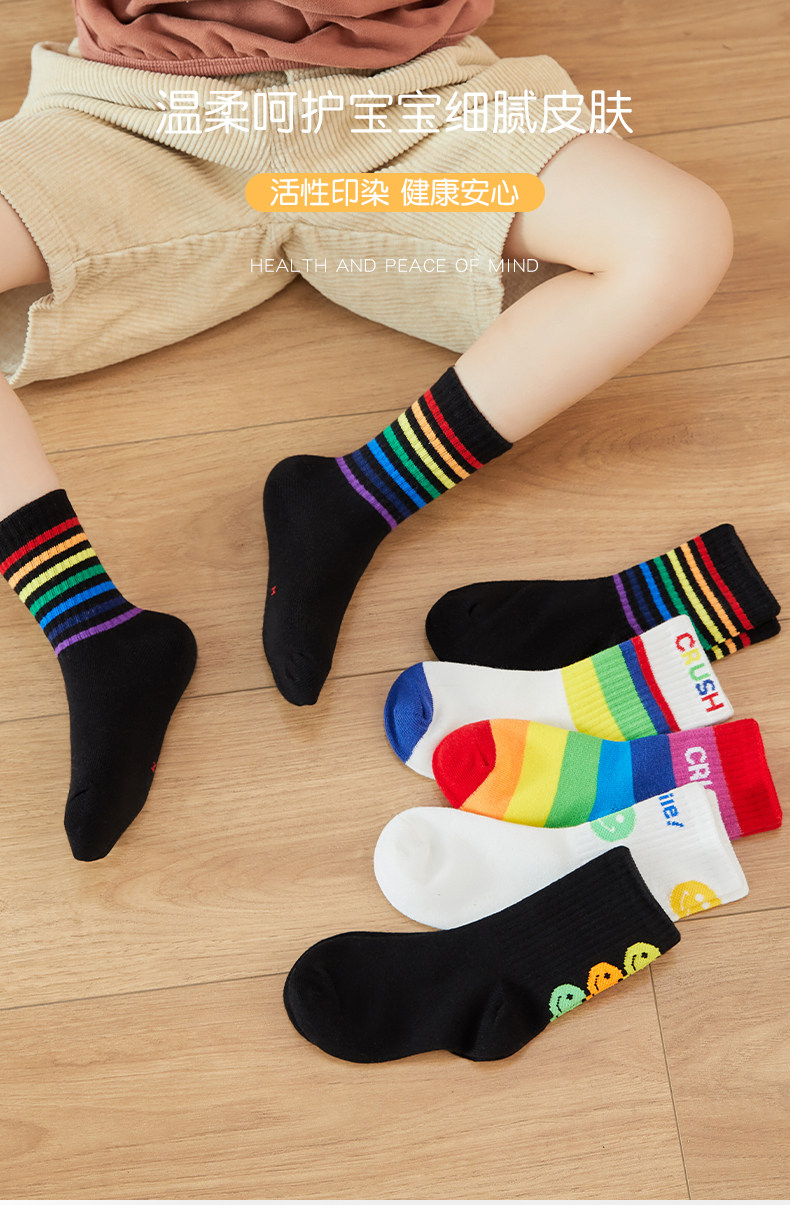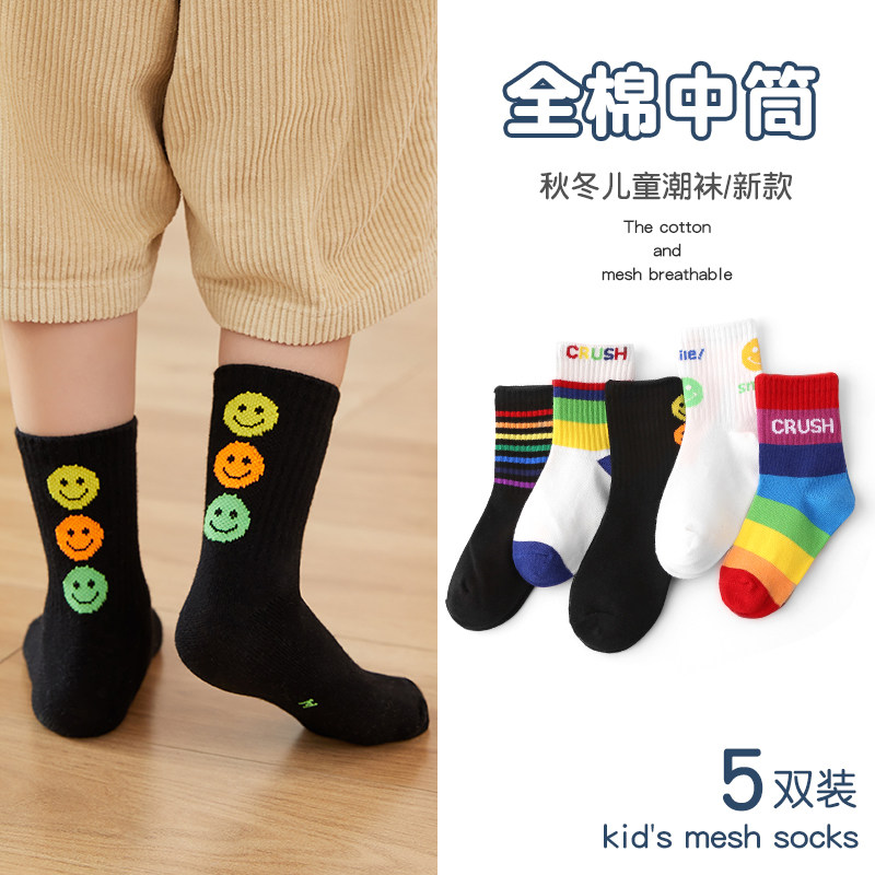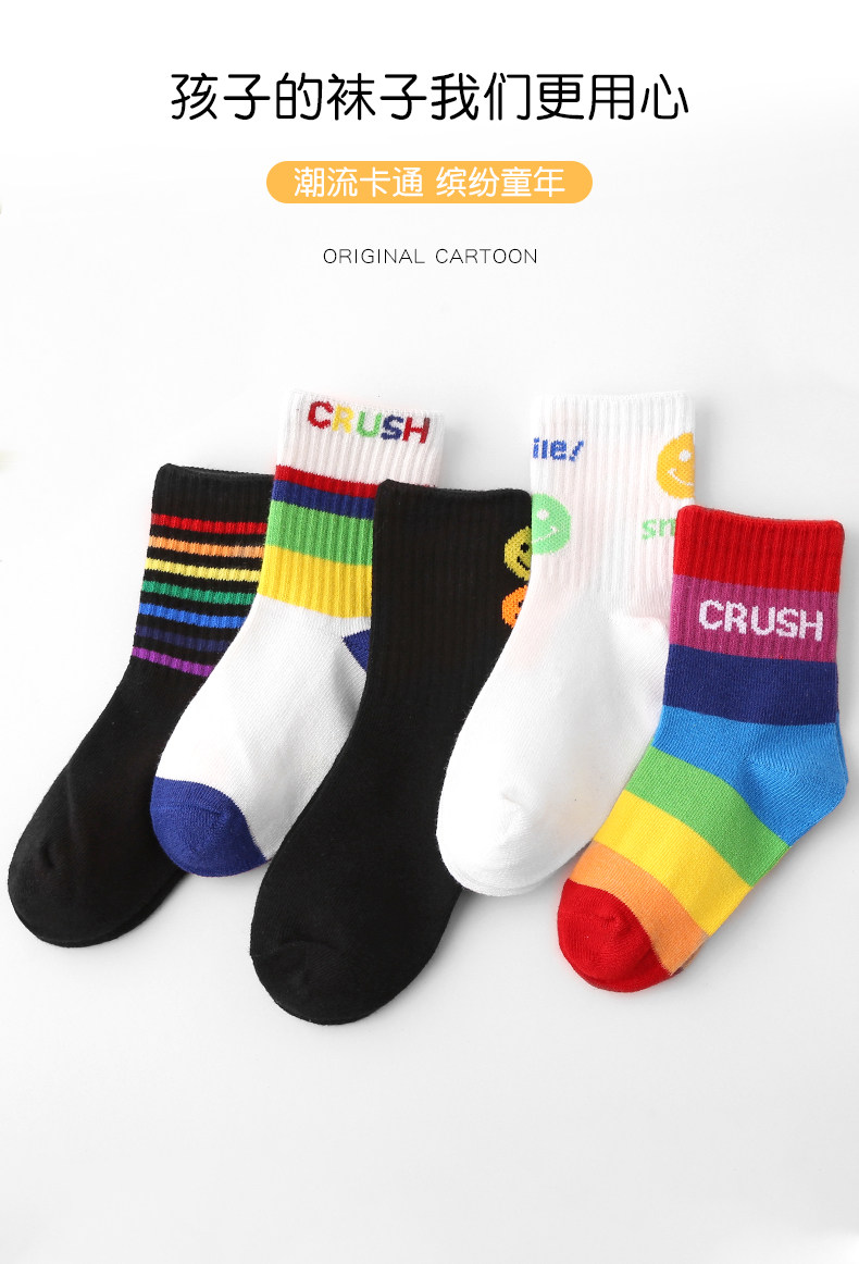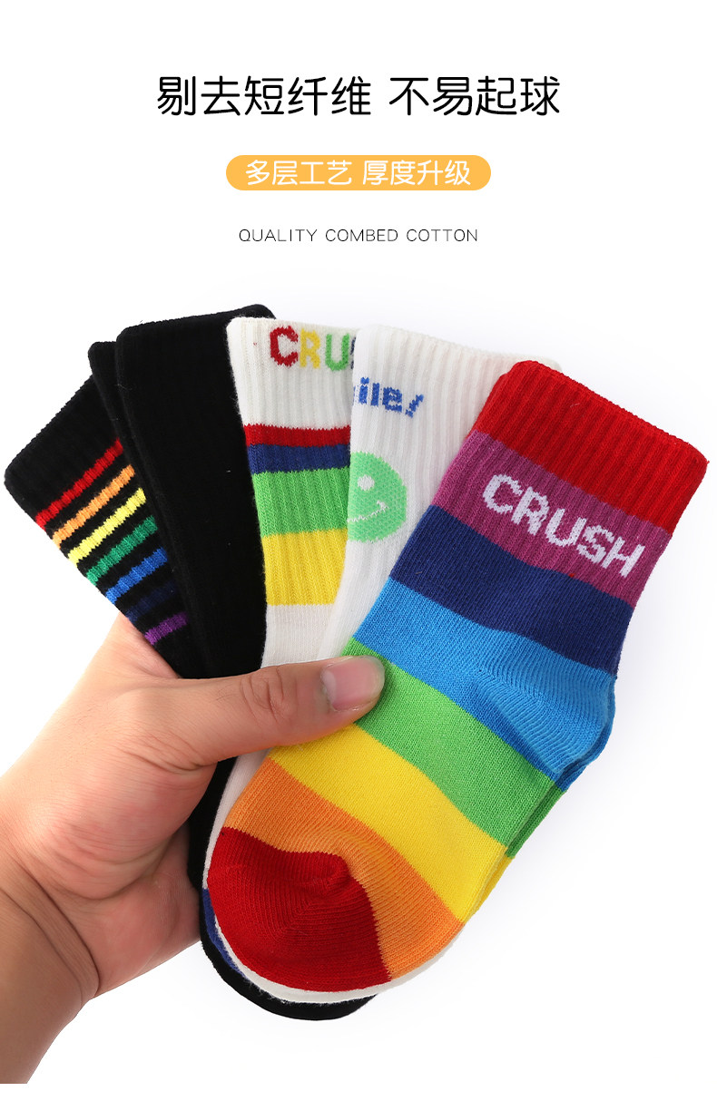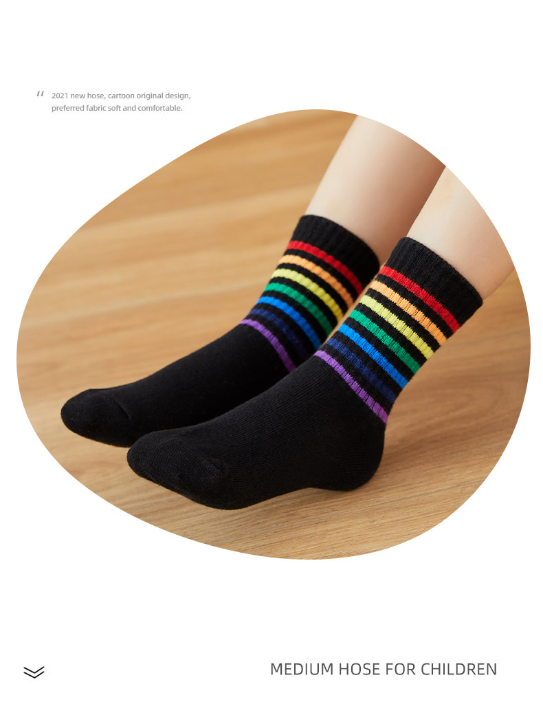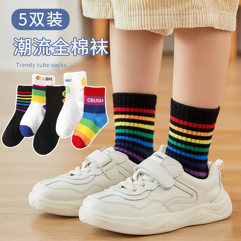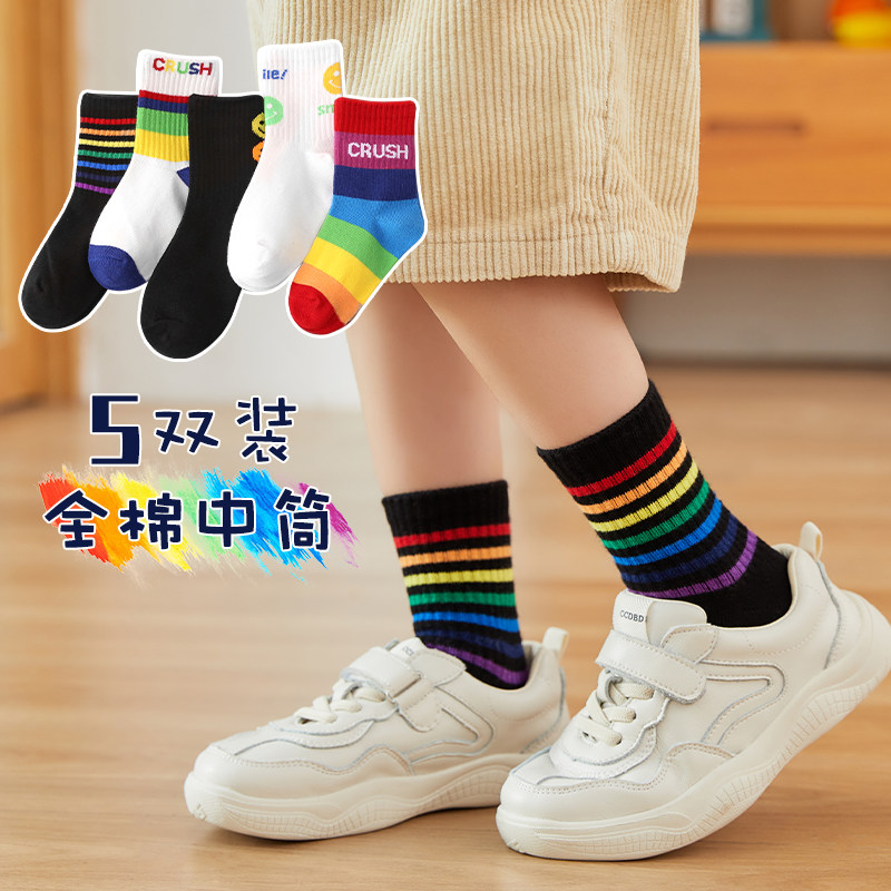 Детские хлопковые носки, тонкие демисезонные радужные гольфы для мальчиков, средней длины