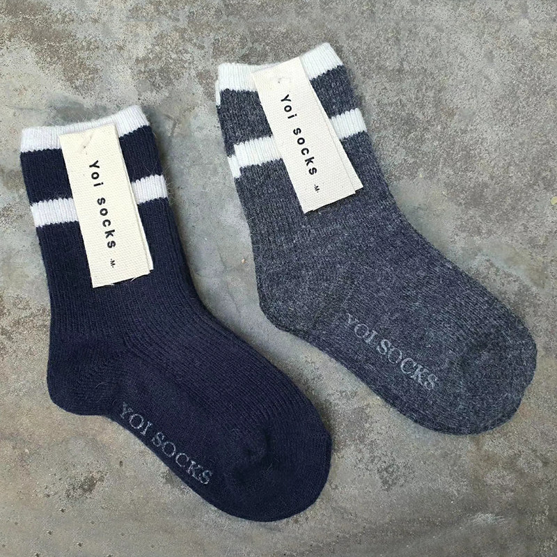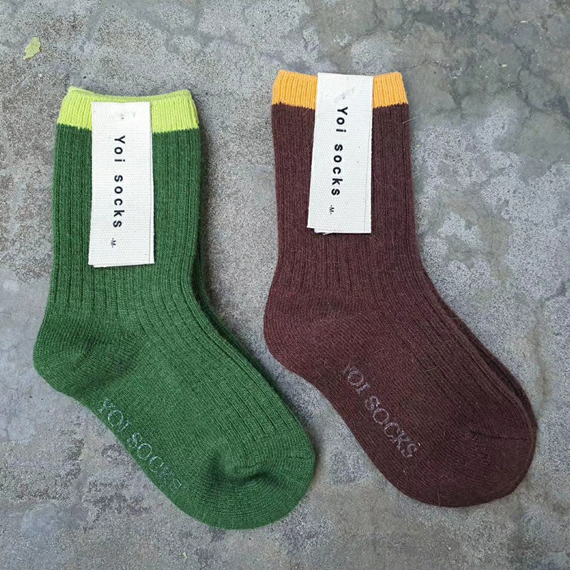 Скидка 50%: Южная Корея импортировала Yoi Мужчины и девочки сгущенными теплыми шерстяными носками 2 пары весенних и осень -контрастных носков теленка