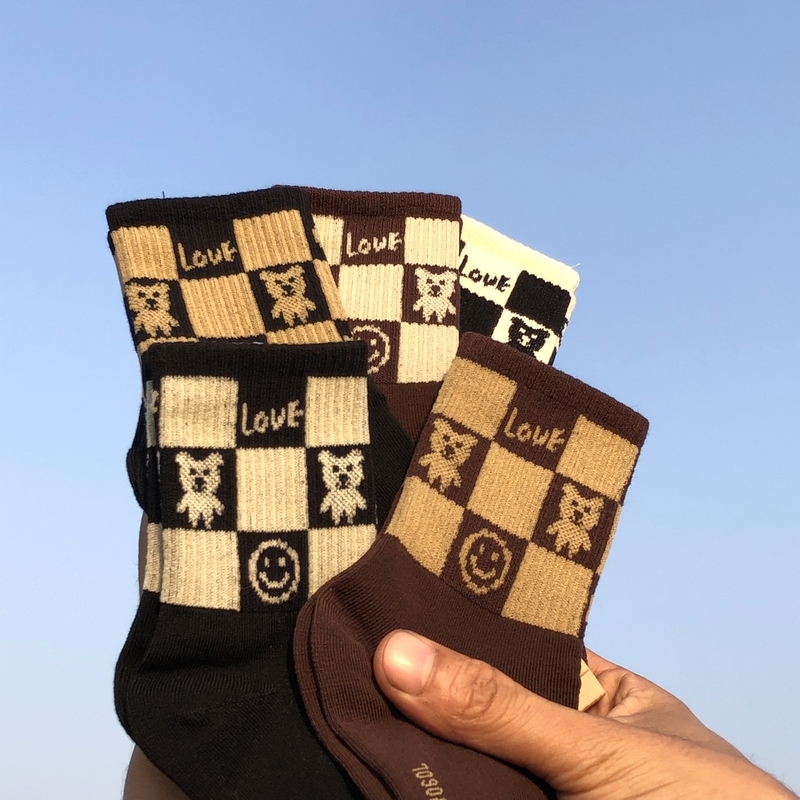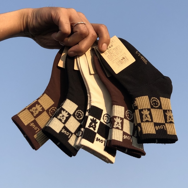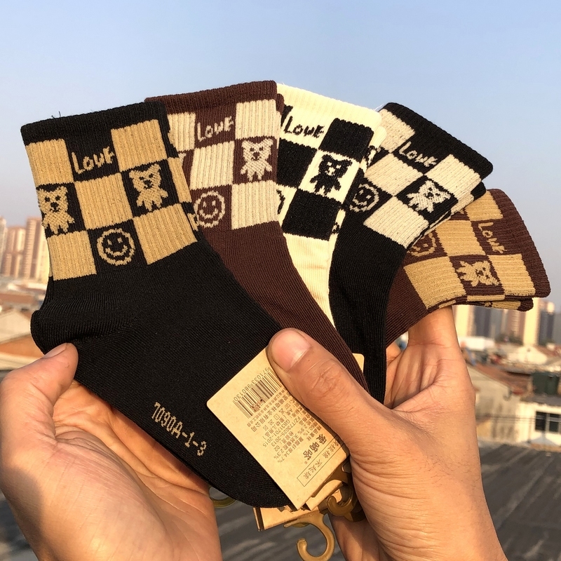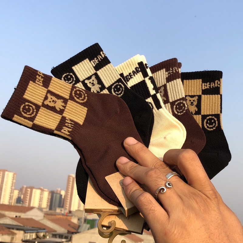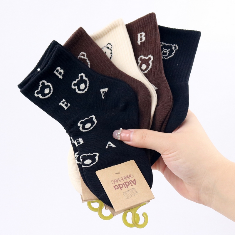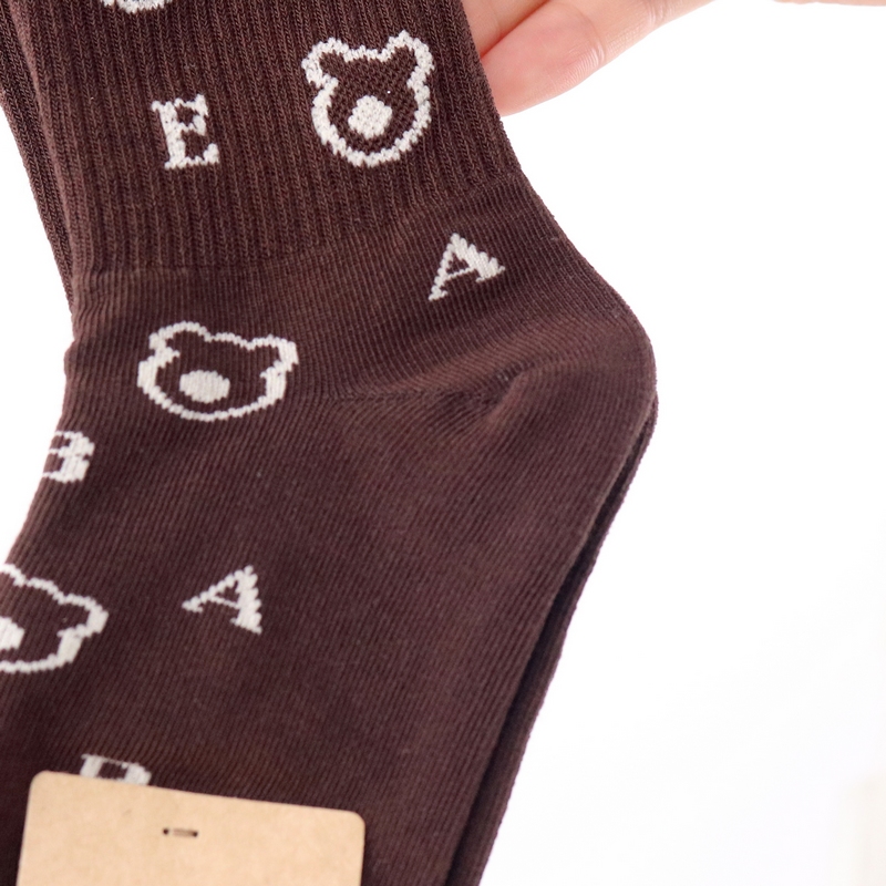Демисезонные хлопковые детские модные носки для школьников, в корейском стиле, с медвежатами, подходит для подростков, высокая талия
