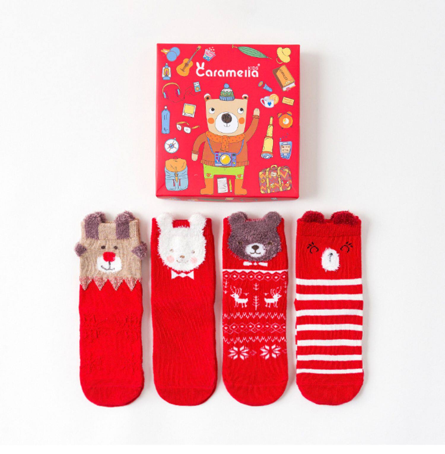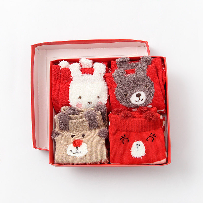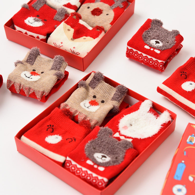 Четыре двойные коробки детские мультфильмы средние носки, мальчики для девочек хлопковые носки, новогодние носки, праздничные хлопковые носки