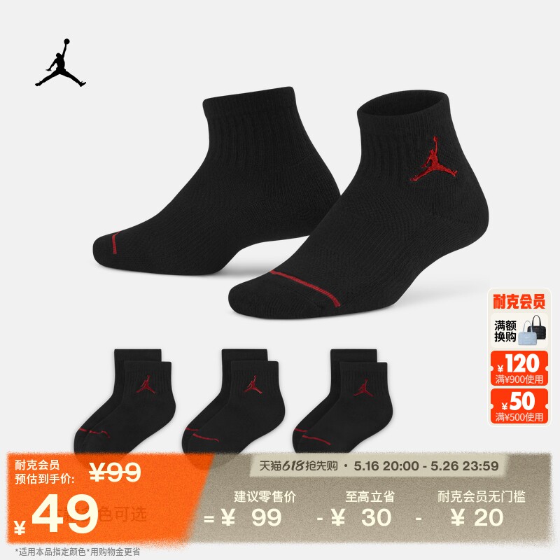 Чиновник Jordan Nike Jordan Boys и маленькие детские спортивные носки 3 пары летней дышащей поддержки HA5108