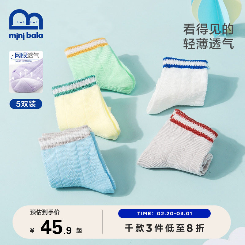 Мини -барабала детские носки 2022 летние мужчины и девочки детская сеть дышащие эластичные хлопковые носки 5 двойные