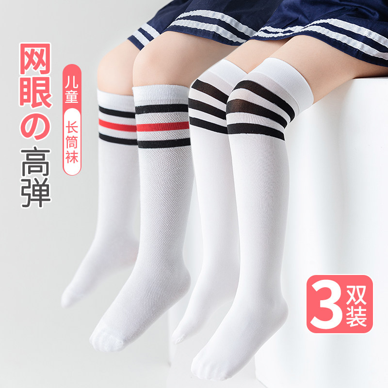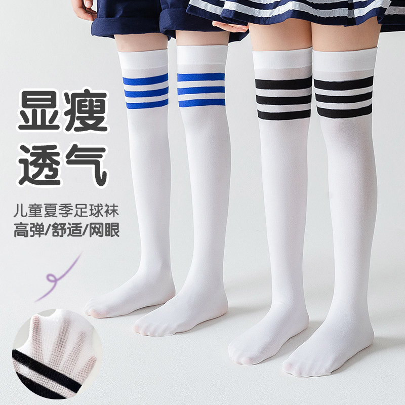 Детские летние тонкие сетчатые гольфы, хлопковые высокие сапоги для школьников и студентов, футбольные носки, средней длины