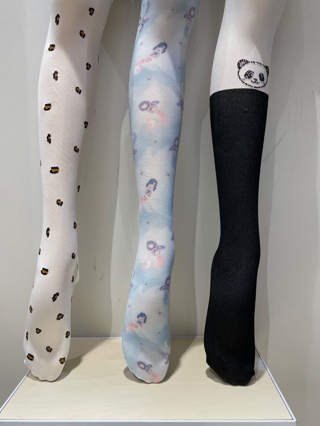 Белые колготки, бархатный лебедь, в корейском стиле, принт