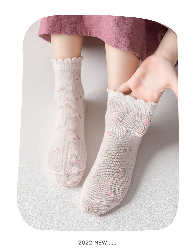 - Ледяные шелковые кружевные клубничные носки (пять двойных пар)