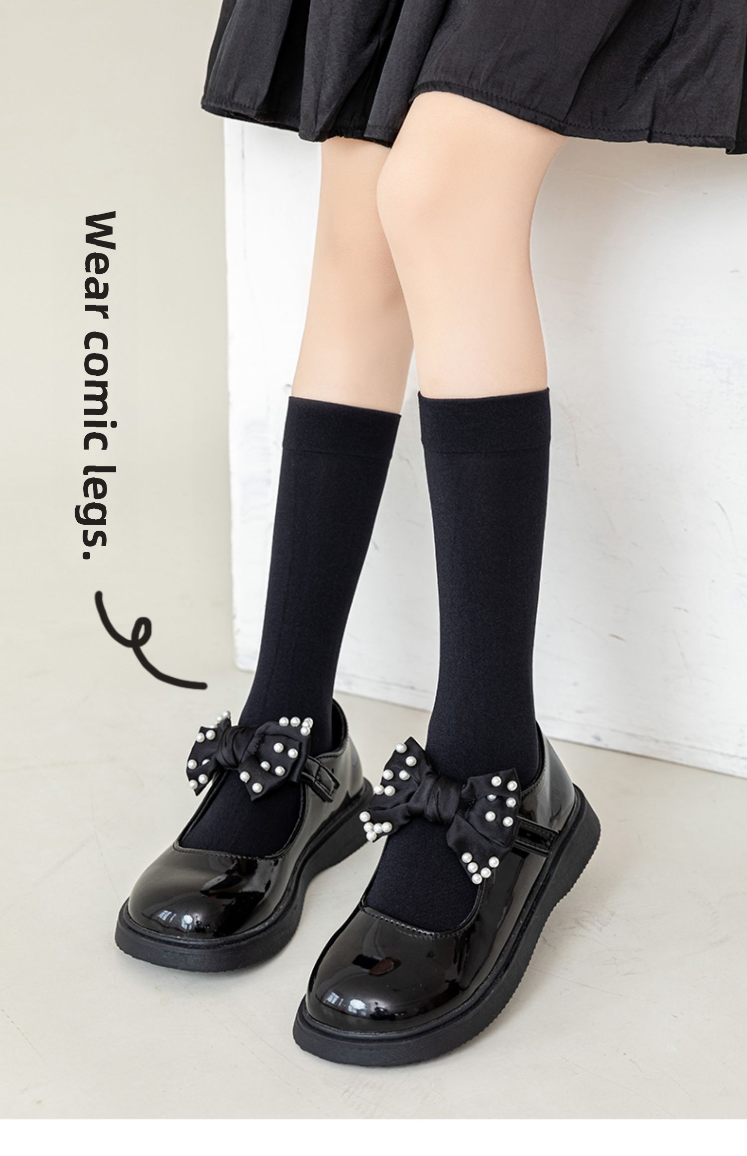 Носки для девочек, летние тонкие черно-белые чулки, летние носки до икры, чулки выше колена для маленьких девочек