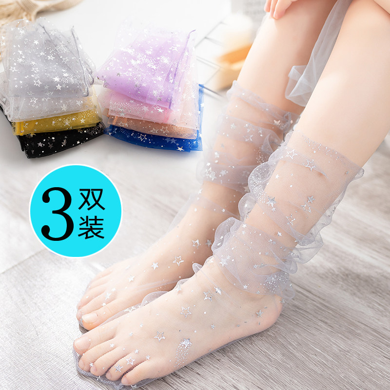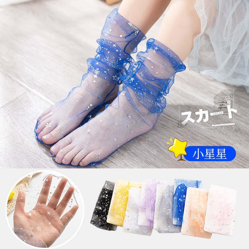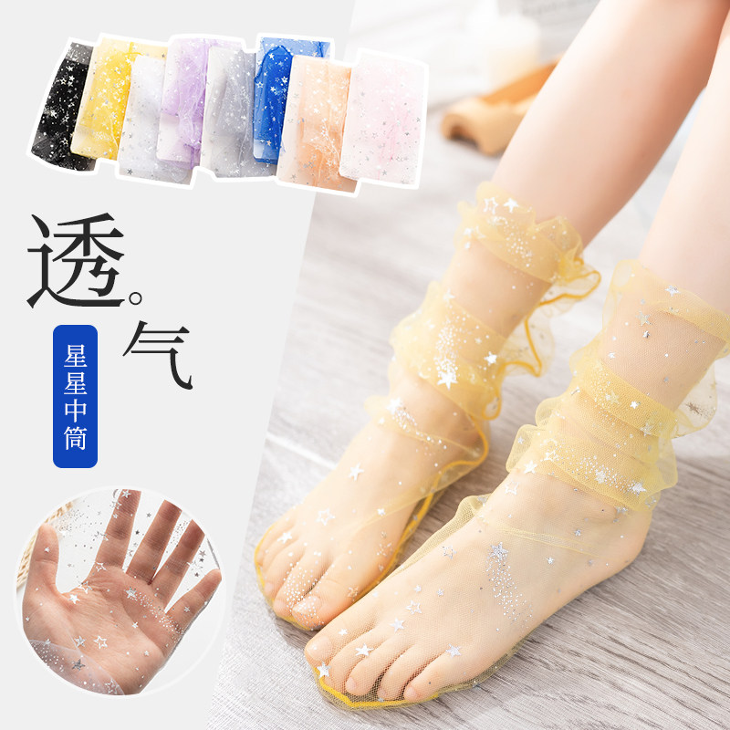 Летние тонкие кружевные гольфы для девочек, прозрачное средство от комаров, средней длины, стиль Лолита