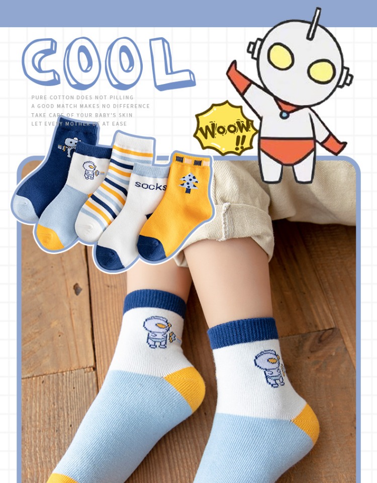 Детские хлопковые осенние тонкие носки для мальчиков, мультяшные гольфы, подходит для подростков, средней длины
