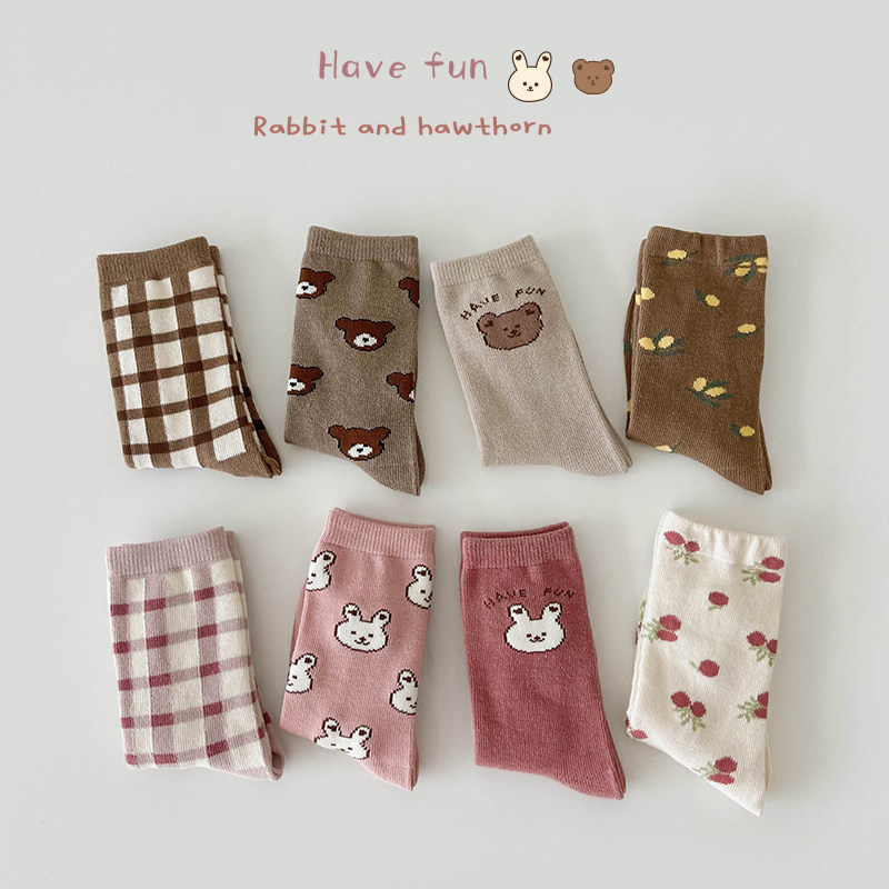 Демисезонные милые хлопковые цветные детские носки подходит для мужчин и женщин для девочек, средней длины, в корейском стиле, с медвежатами