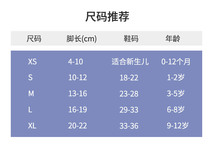 | Возрастная категория: | XS-код/подходящая длина ноги 4-10 см., Размер S/подходит на ногу длиной 10-12 см., Размер М/подходит на ногу длиной 13-16 см., Размер L/подходит на ногу длиной 16-19 см., XL-код/подходящая длина ноги 20-22 см. |