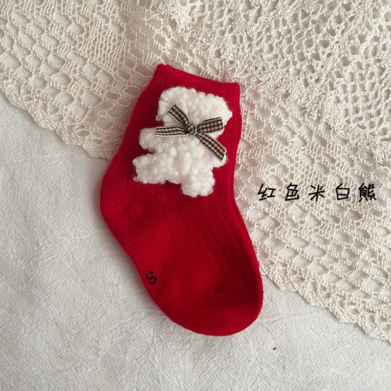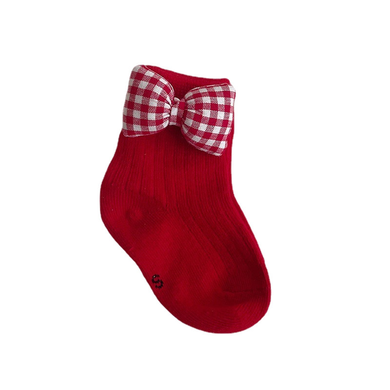 Детские демисезонные милые носки для новорожденных, красные праздничнные гольфы для девочек, средней длины