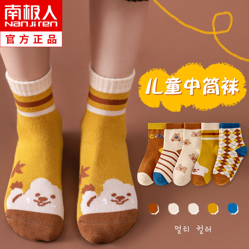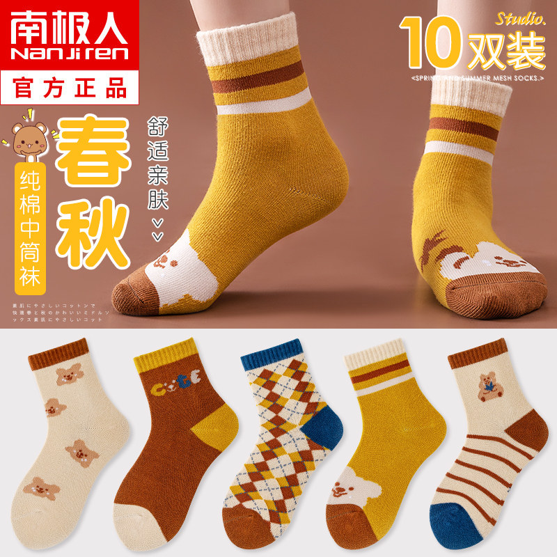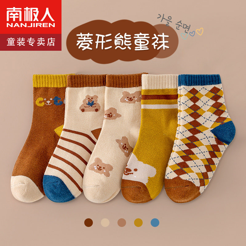 Детские хлопковые демисезонные тонкие носки для мальчиков, подходят для подростков, с медвежатами, средней длины