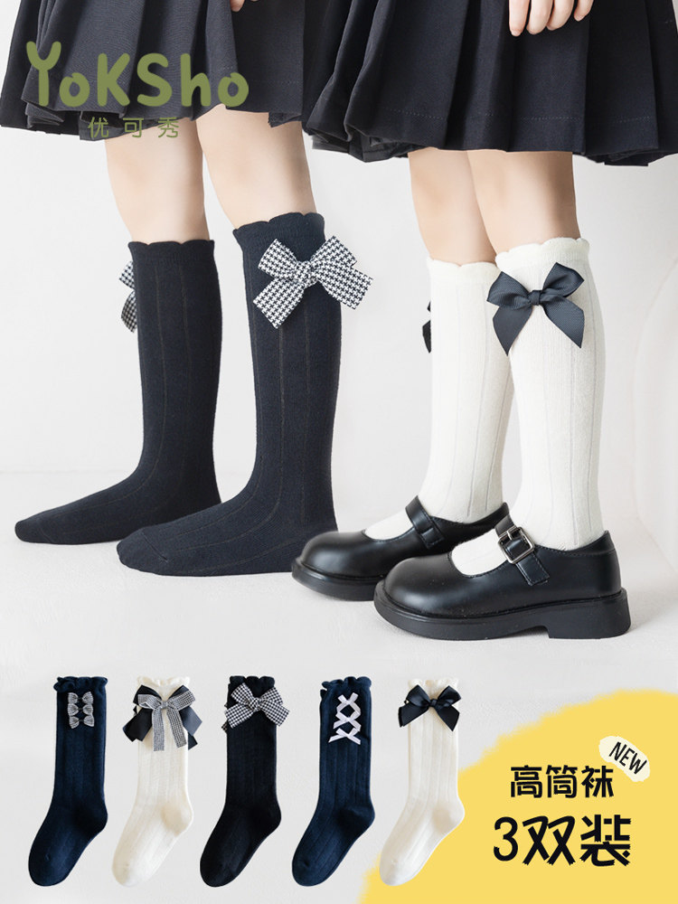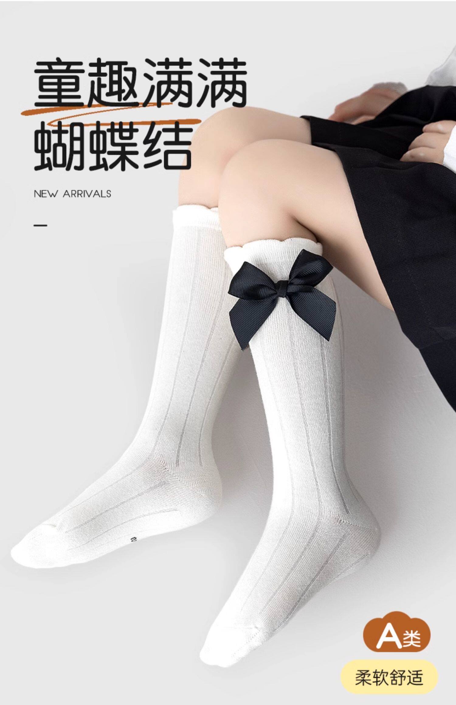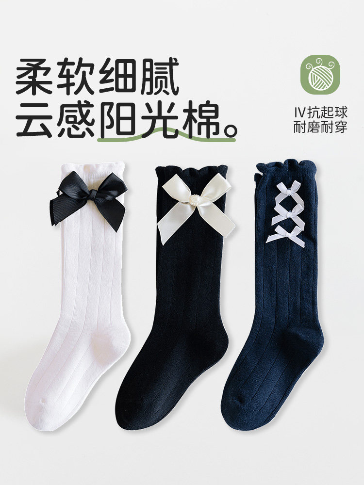Хлопковые носки, детские гольфы с бантиком, средней длины