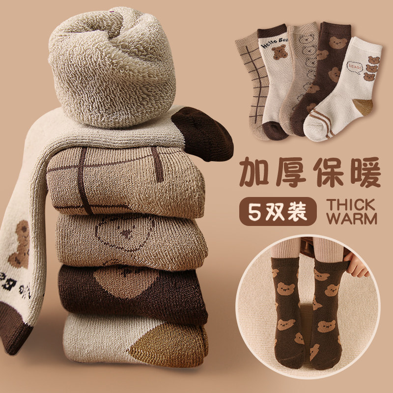 Детские демисезонные хлопковые носки, утепленные зимние гольфы, с медвежатами, средней длины