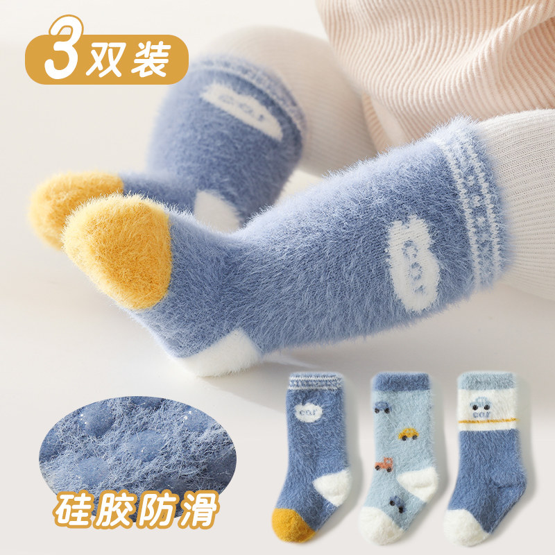 Детские демисезонные утепленные носки, нескользящие гольфы для новорожденных для раннего возраста, средней длины, 3 мес.