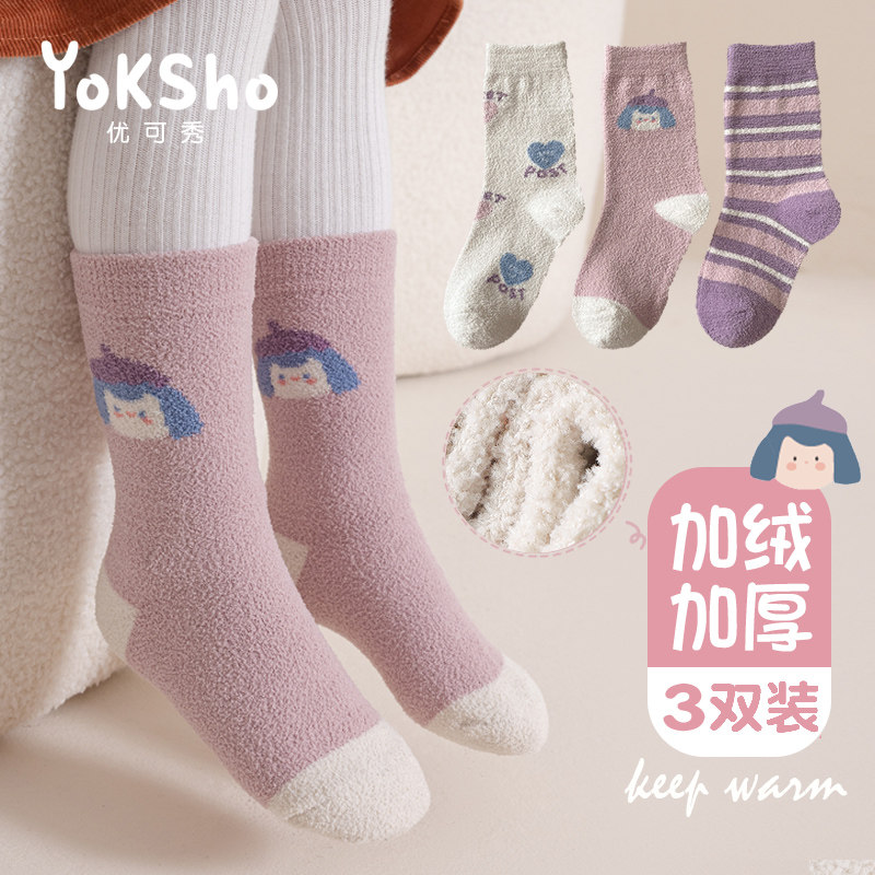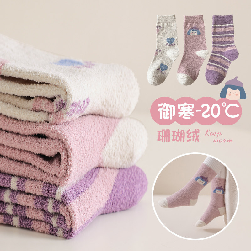 Демисезонные носки, детские утепленные коралловые бархатные гольфы, средней длины