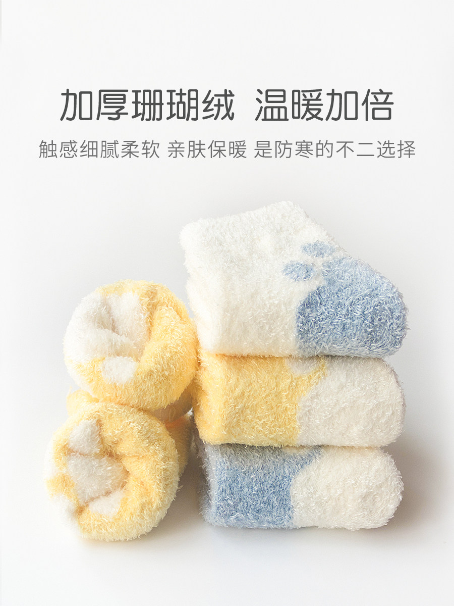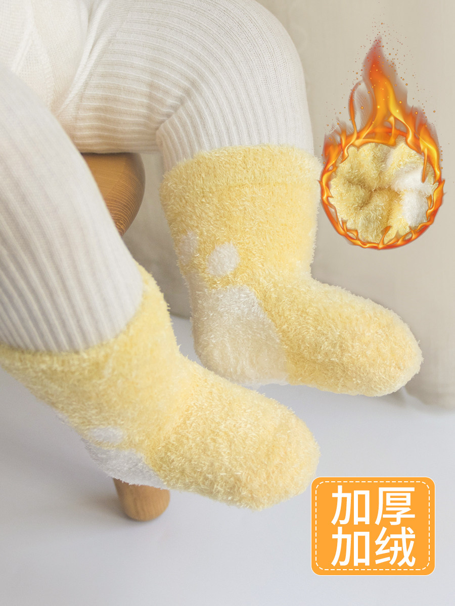 Детские зимние флисовые удерживающие тепло носки для новорожденных, коралловые бархатные демисезонные гольфы, увеличенная толщина, 3 мес., средней длины
