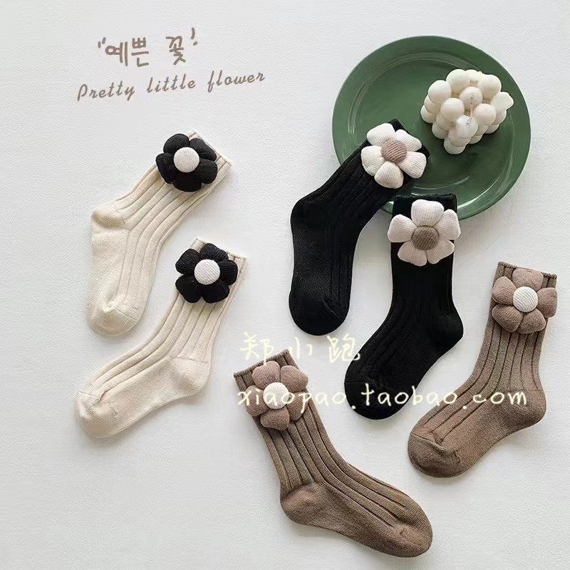 Осенние демисезонные гольфы, носки, трехмерная кукла, средней длины, в цветочек, из ворсистого хлопка