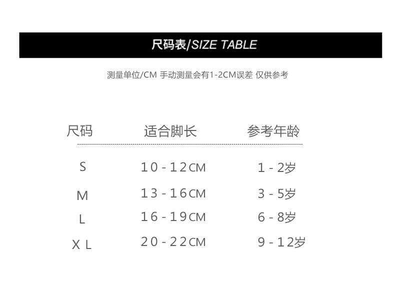 | Возрастная категория: | Размер S/подходит на ногу длиной 10-12 см., Размер М/подходит на ногу длиной 13-16 см., Размер L/подходит на ногу длиной 16-19 см., XL-код/подходящая длина ноги 20-22 см. |