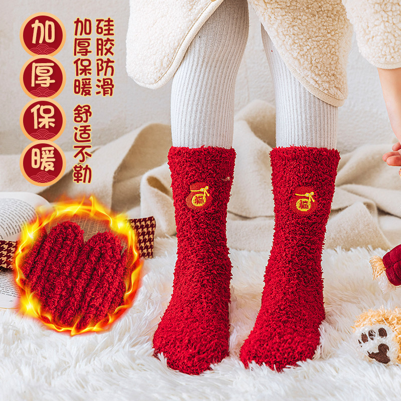 Детские зимние коралловые носки, бархатный оберег на день рождения подходит для мужчин и женщин, гольфы, увеличенная толщина, средней длины