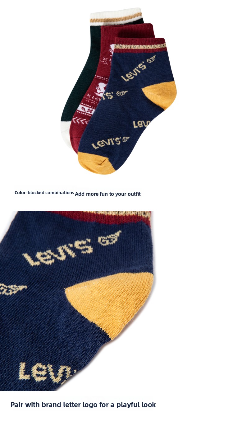 [3 пары] Левис Левис Детские нейтральные носки для осени новые мужчины и женские носки 3 пары
