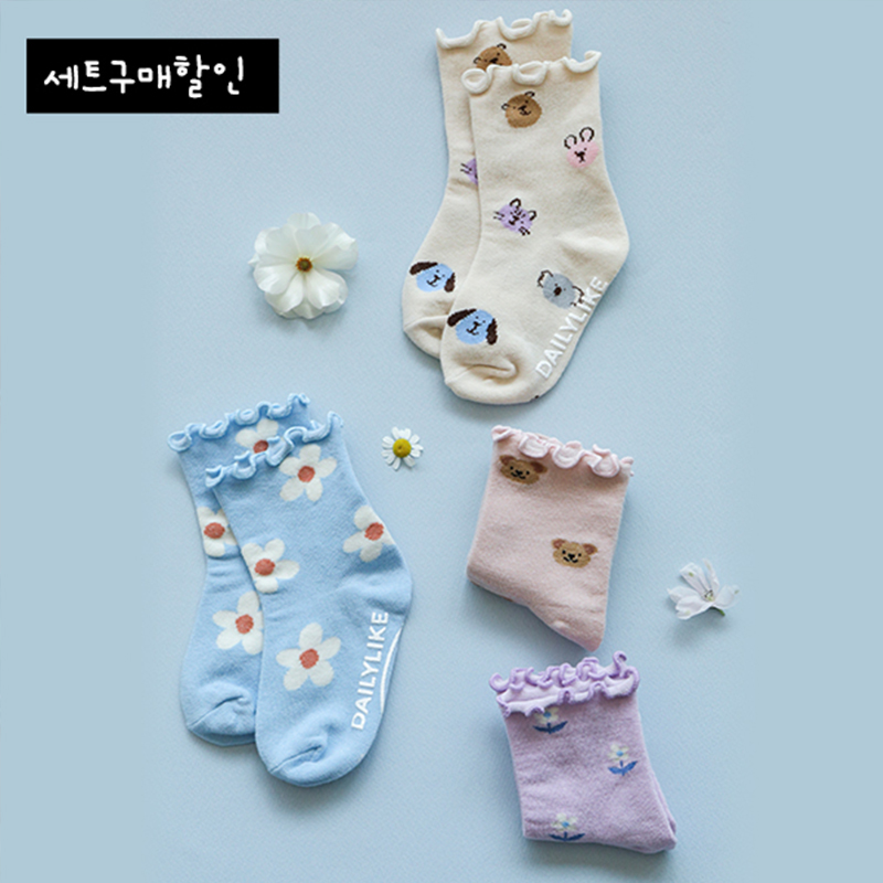 Корейские Dailylike милые супер мягкие детские носки свободны без кружевных кружевных чулок в средней длине 4 пары
