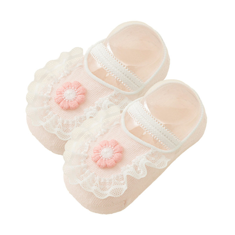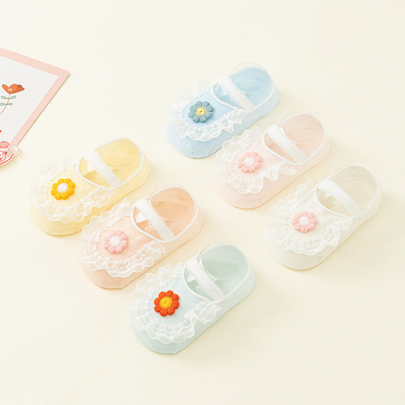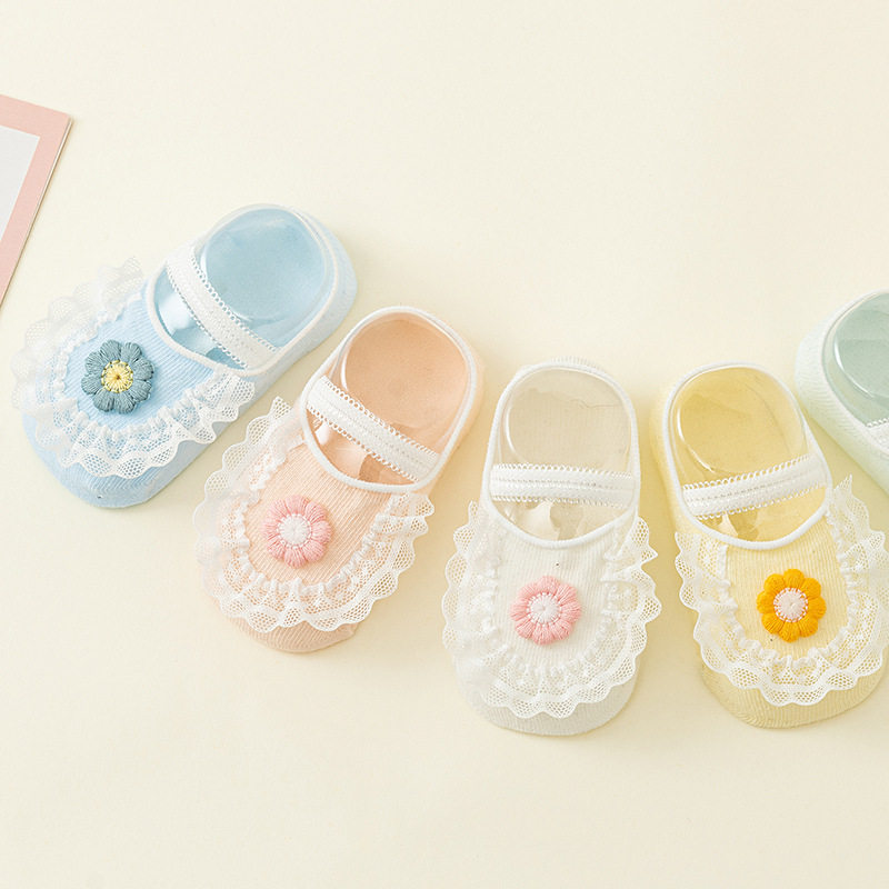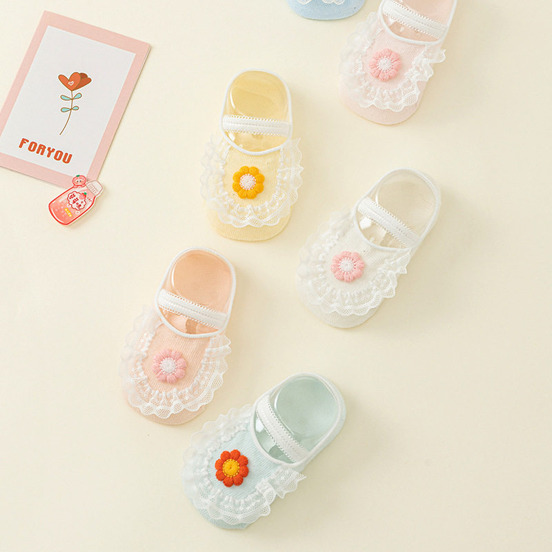 Детские нескользящие милые кружевные летние носки для новорожденных для девочек, кружевное платье