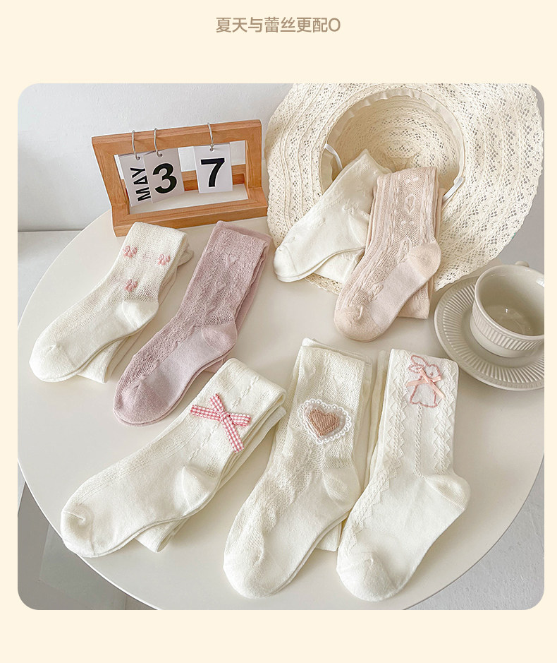 Летние колготки, детские леггинсы, белые хлопковые носки, стиль Лолита