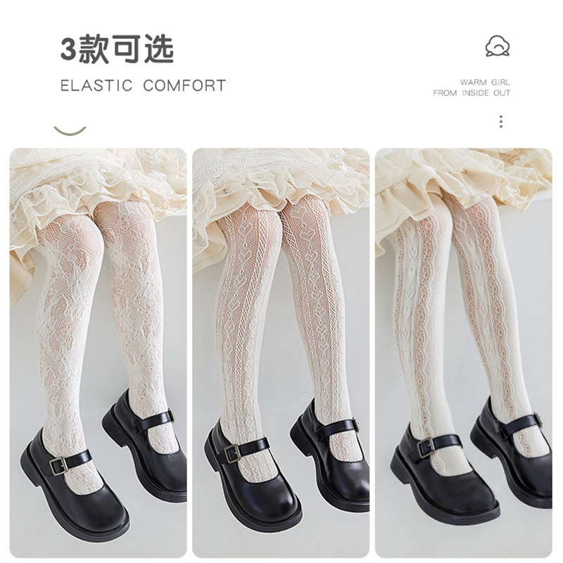 Колготки, белый наряд маленькой принцессы, кружевные детские летние ультратонкие носки, стиль Лолита