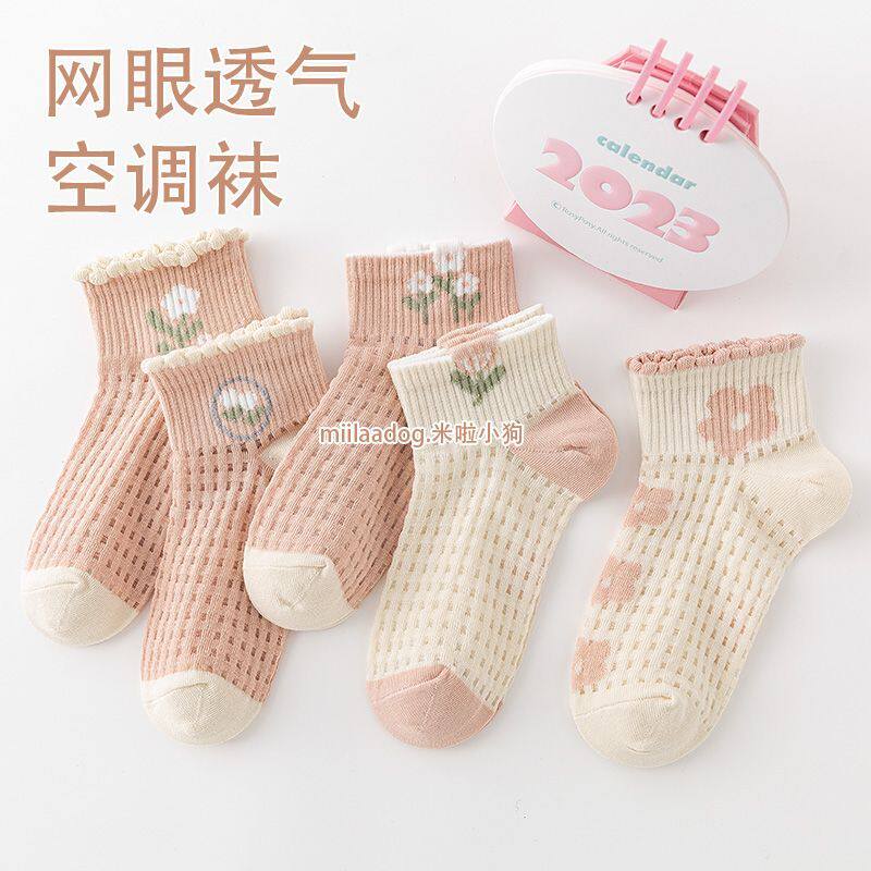 Детские дышащие летние тонкие мультяшные носки для школьников и студентов в форме цветка, впитывают пот и запах