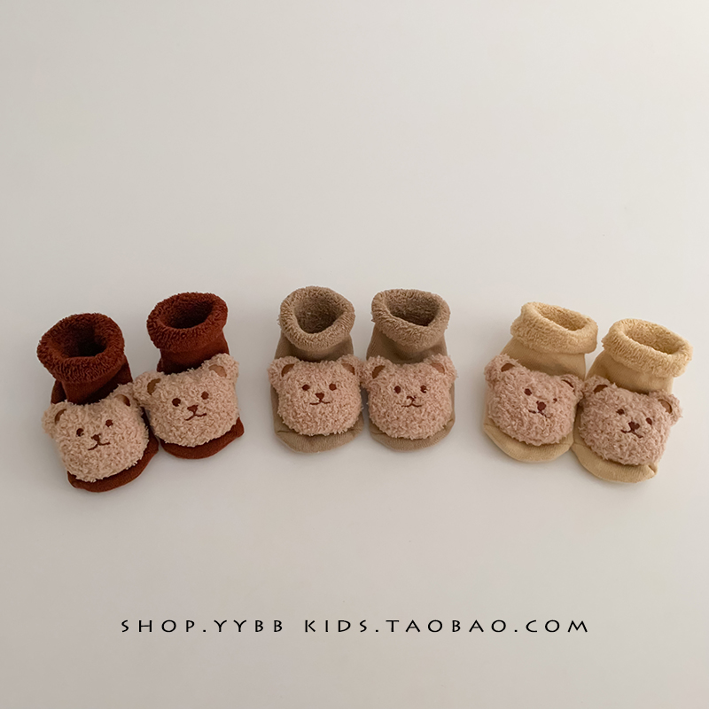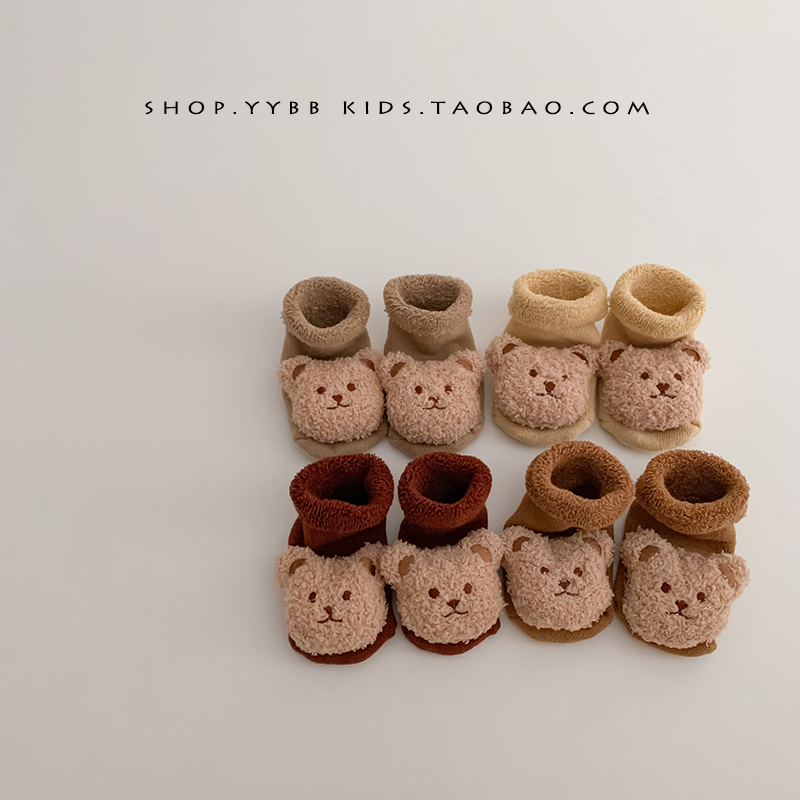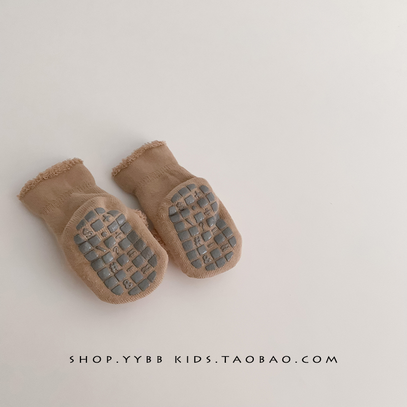 Детские демисезонные брендовые флисовые удерживающие тепло нескользящие носки для новорожденных, в корейском стиле, 0-3 мес.